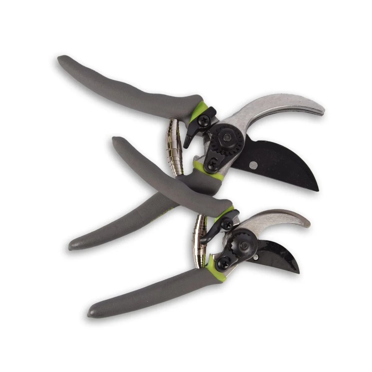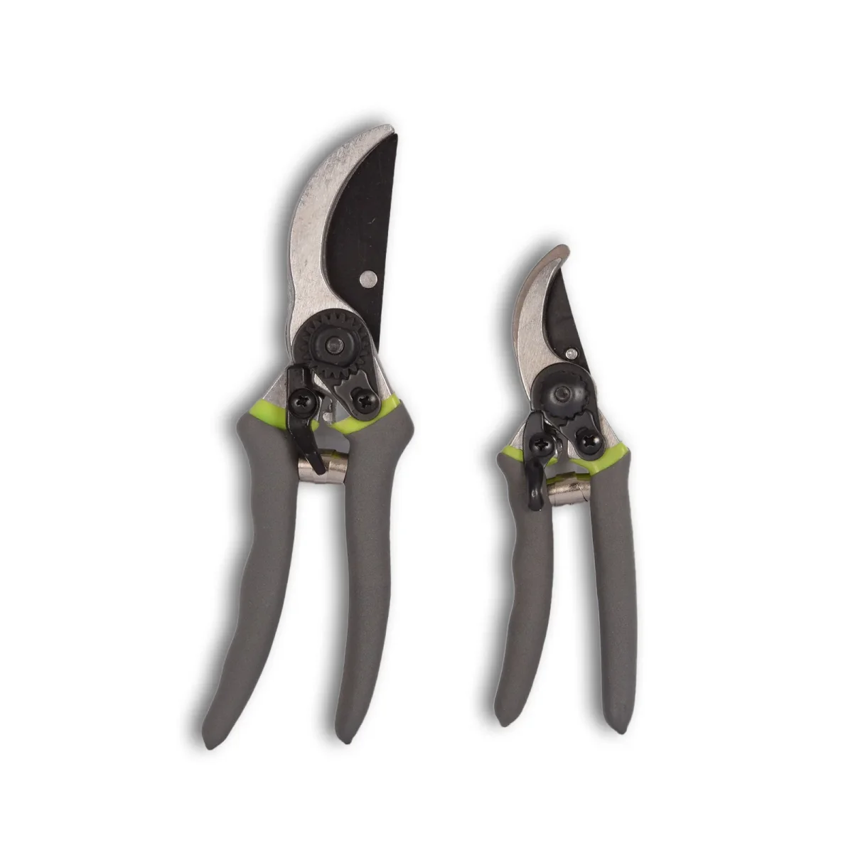 Onze snoeischaren zijn uitgevoerd in een stijlvol grijs en groen kleurenschema, waardoor ze niet alleen functioneel, maar ook esthetisch aantrekkelijk zijn. Ze kunnen gemakkelijk worden opgeborgen wanneer ze niet in gebruik zijn.
