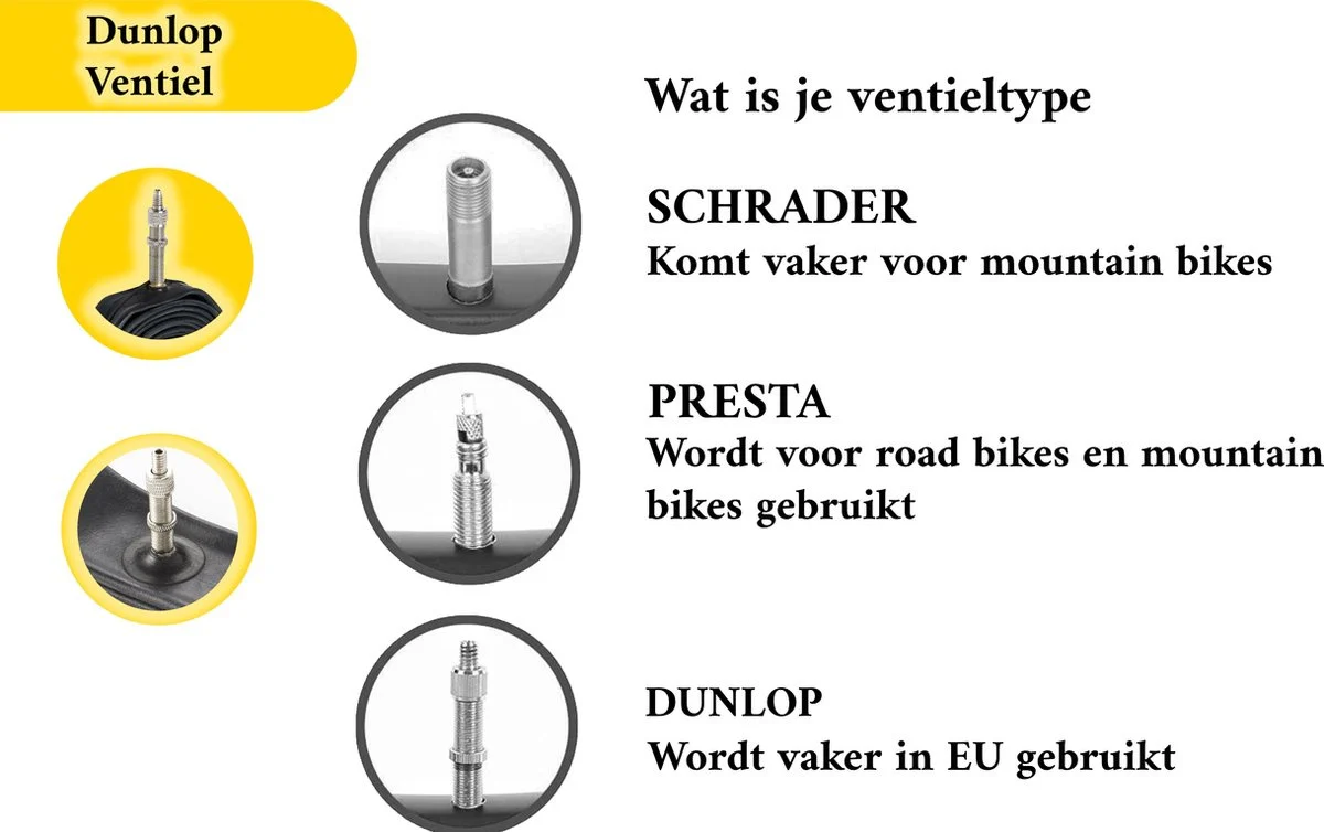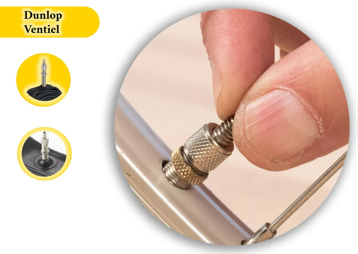 ✔️ Dunlop-ventiel (DV): eenvoudig oppompen, lange drukbehoud