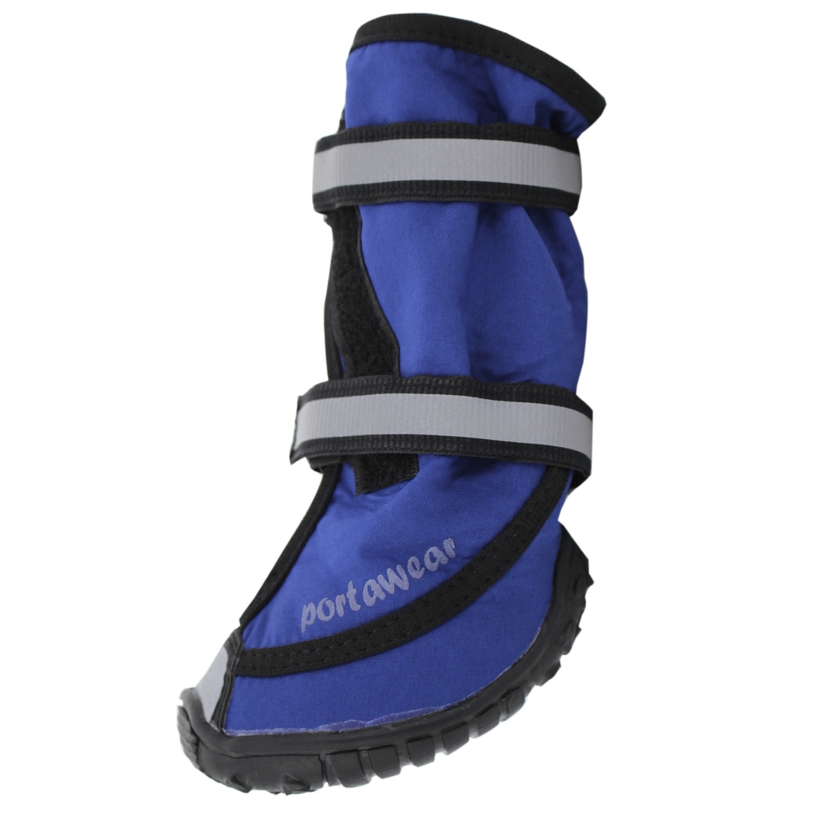 De Porta Wear laarzen zijn gemaakt van stevig softshell materiaal. Ze zijn ontworpen om de hond te beschermen tegen alle externe factoren, zoals strooizout in de wintermaanden. De schoenen beschermen ook gewonde poten tegen vuil dat de wond anders zou verontreinigen. De rubberen zool zorgt voor een stevige grip en de reflecterende strepen op het klittenband en de reflecterende neus van de schoen zorgen voor extra veiligheid. De laarzen zijn verkrijgbaar in 6 maten in de kleuren oranje en blauw. XS – 54 x 47 mm (2,1” x 1,9”)
