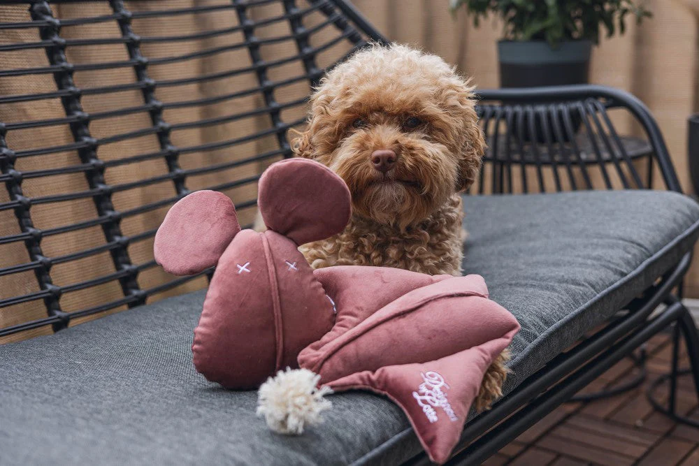 Ontdek het onweerstaanbare hondenspeelgoed Muis Adio, ontworpen door Lotte: jouw trouwe metgezel’s nieuwe favoriete knuffel!