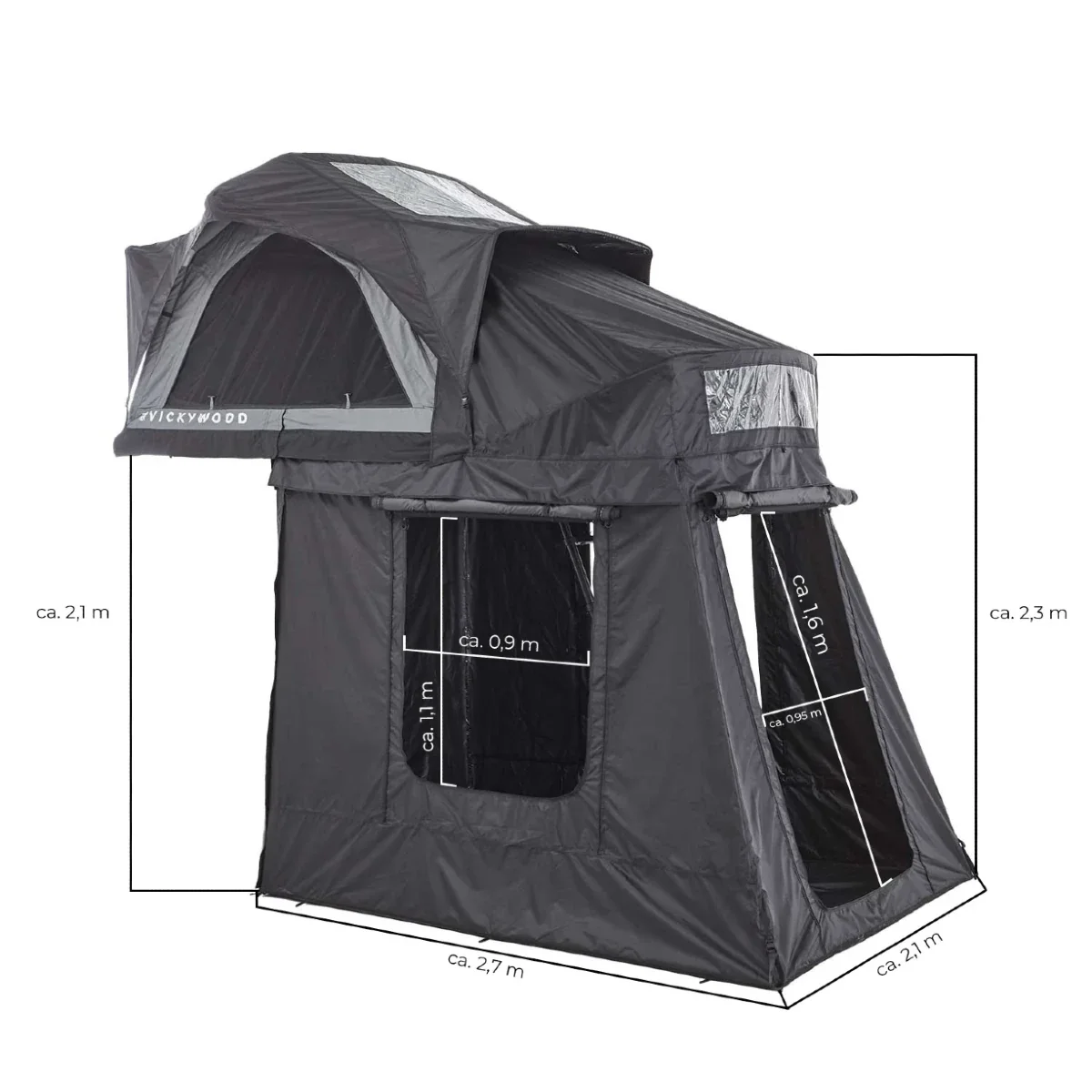 L’annexe de la tente de toit BAOBAB AIR de la marque Vickywood combine légèreté et protection 4 saisons, offrant un espace de vie au sol parfaitement ventilé et modulable selon vos besoins.