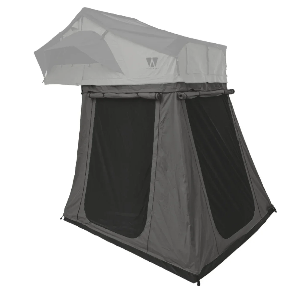 L’annexe pour la tente de toit BIG WILLOW de la marque Vickywood est le complément idéal pour les tentes de générations 2 à 4, offrant un espace de vie au sol robuste, imperméable et ajustable selon votre véhicule.