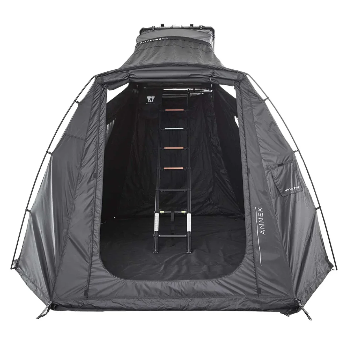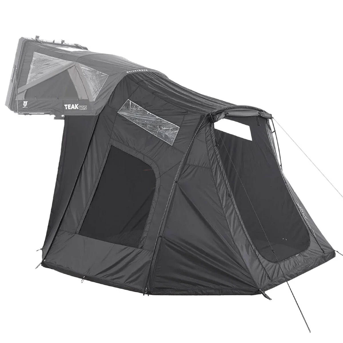L’annexe sur mesure conçue pour la tente de toit hybride TEAK 135 de la marque Vickywood transforme votre bivouac en une véritable résidence mobile.