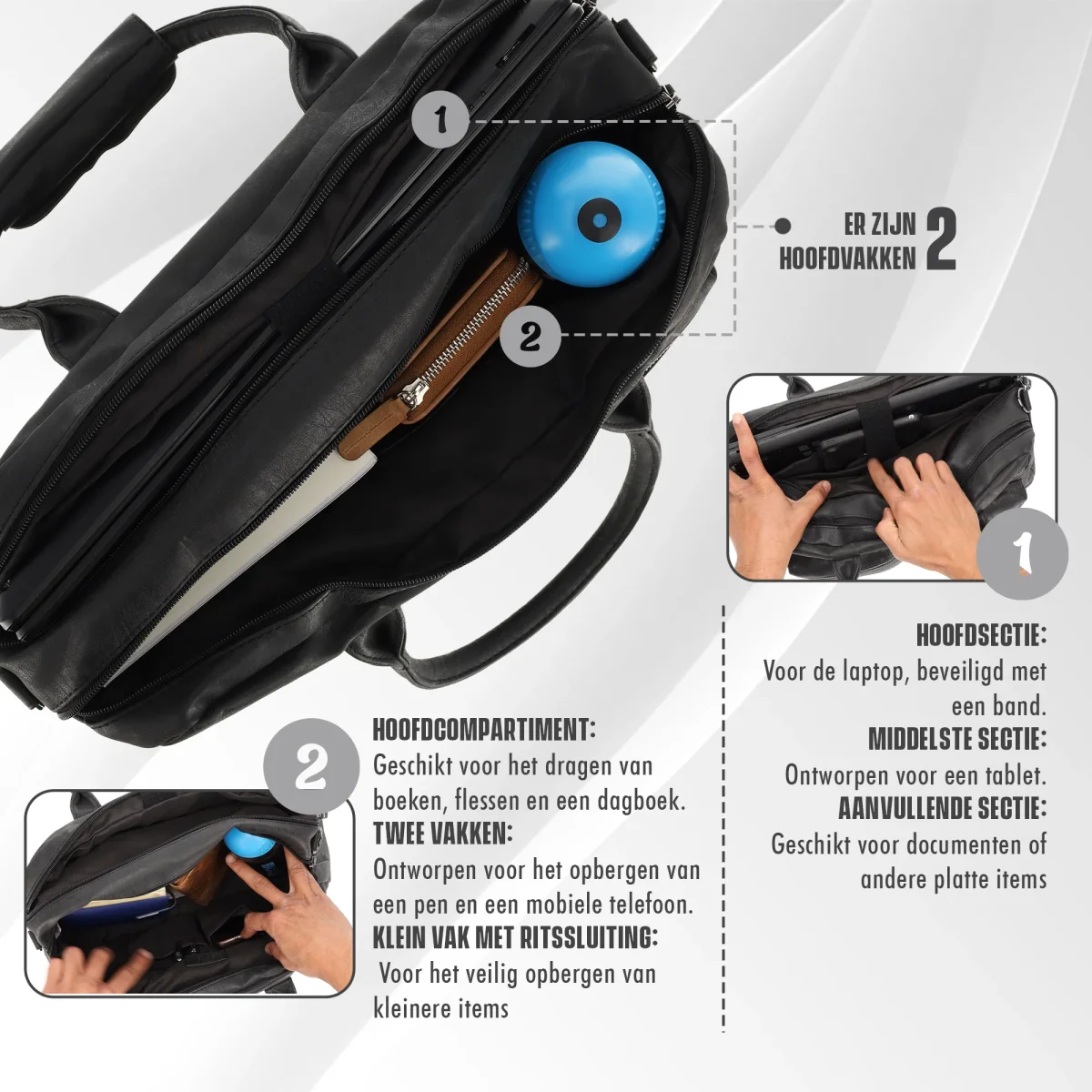 Ook geschikt als aktetassen voor laptops en werktassen met een laptopvak voor professionals.