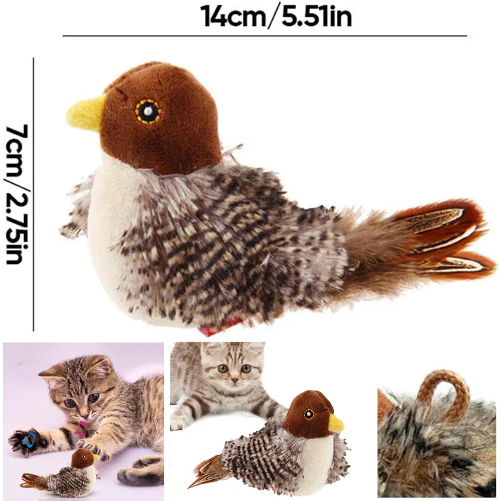 Geef uw kat de ideale speelervaring met onze gesimuleerde tjilpende vogel. De realistische vormen en felle kleuren, samen met realistische vogelgeluiden, zorgen ervoor dat je katachtige vriend urenlang bezig en vermaakt blijft.