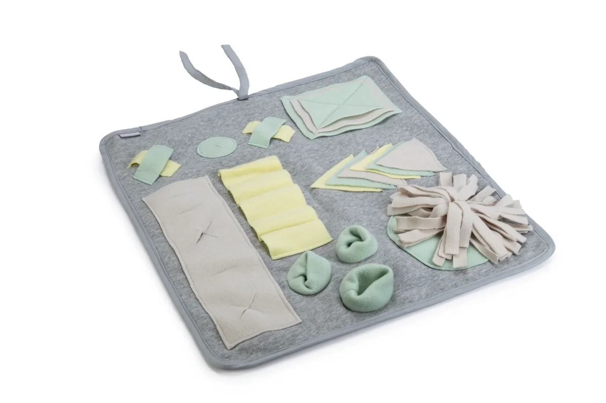 De traditionele snuffelmatten met de vele slierten ken je vast al wel, maar de Beeztees Doeka Snuffelmat is echt anders! Deze snuffelmat bevat namelijk meerdere structuren en speelelementen, waardoor jouw pup zich nooit zal vervelen. Snoepjes of koekjes kunnen worden verstopt in deze elementen, waarna jouw pup door goed te snuffelen zijn of haar beloning kan vinden. Doordat er vele elementen zijn, kan je de snoepjes of koekjes iedere keer op een andere plek verstoppen.