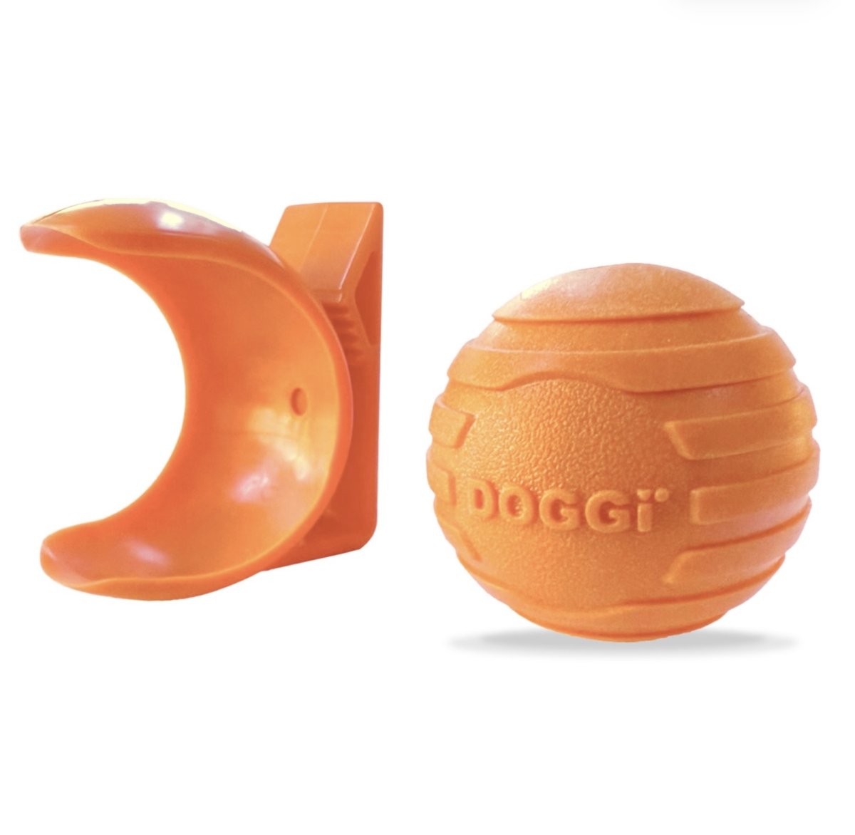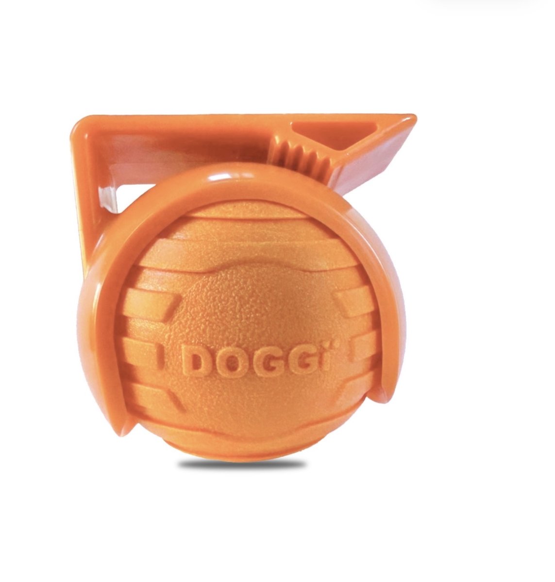 De Doggi Catch & Carry Ball n Clip is gemaakt van stevig thermoplastisch rubber (TPR). Superduurzaam met een uitstekende scheur- en slijtvastheid, en voorzien van een handige houder die stevig aan je riem of tailleband kan worden bevestigd, zodat je de favoriete bal van je hond handsfree kunt dragen tot het tijd is om te spelen. Ontworpen om op natuurlijke wijze in te spelen op de aangeboren behoefte van een hond om te foerageren en te kauwen, heeft de bal een gegroefd oppervlak ter bevordering van de gebitsverzorging en een opening om de favoriete snoepjes eruit te laten.