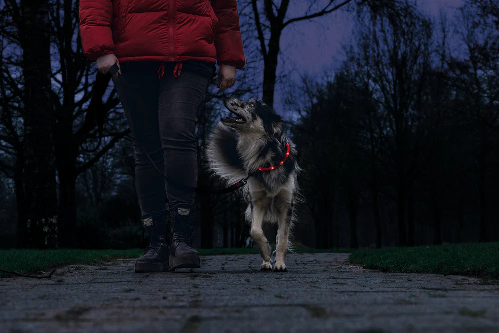 Wanneer de verlichting zwakker wordt of uitvalt, laad je de halsband moeiteloos op via de USB-aansluiting. Dankzij het gebruiksvriendelijke ontwerp is deze halsband op maat te knippen, waardoor het geschikt is voor honden van alle formaten. Let wel op dat het niet mogelijk is om een hondenriem aan deze halsband te bevestigen.