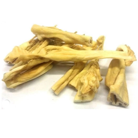 Puur gedroogde lamskophuid, een harde en taaie kauwsnack voor je hond.