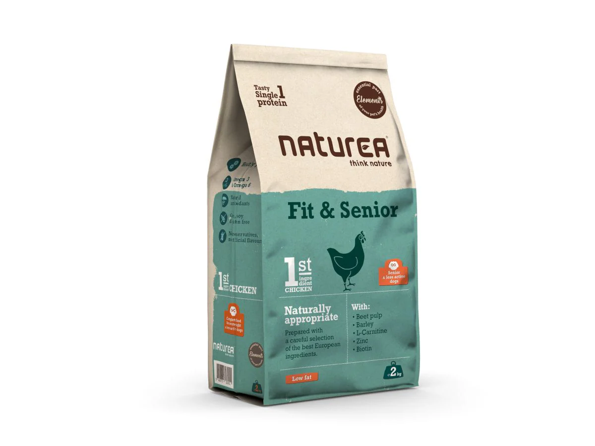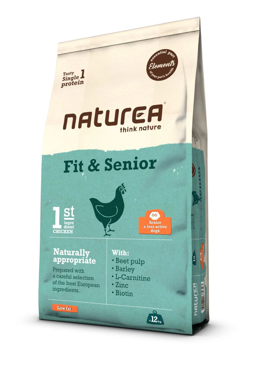 Met dit in gedachten en naar het concept van Naturea: om natuurlijk passend voedsel te bieden, is het Elements Fit & Senior-recept ontwikkeld. Dit is een compleet dieet, ontwikkeld voor wanneer er speciale voedingsbehoeften zijn, ofwel er last is van overgewicht of wanneer er een natuurlijke vertraging van de stofwisseling is opgetreden. Perfect aangepast aan volwassen honden van alle rassen.
