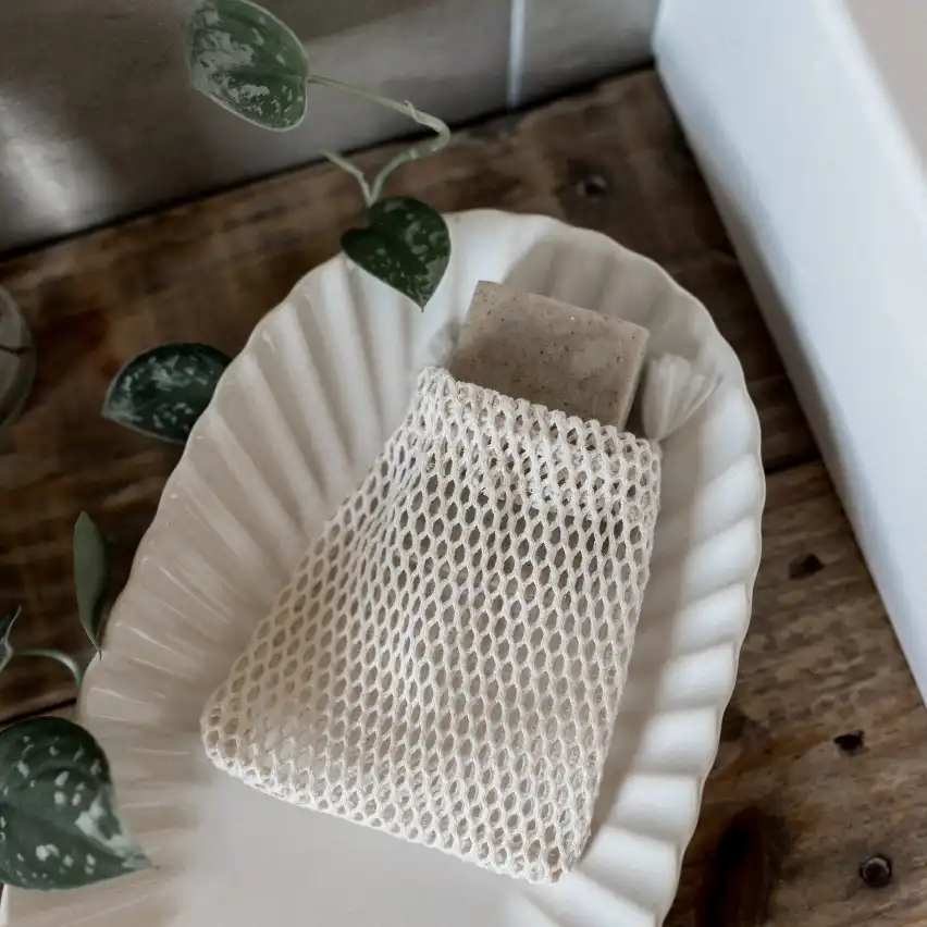 Le filet à savon magique de la marque française Simple Things permet de se savonner, de faire sécher son savon solide et de l’utiliser jusqu’au bout.