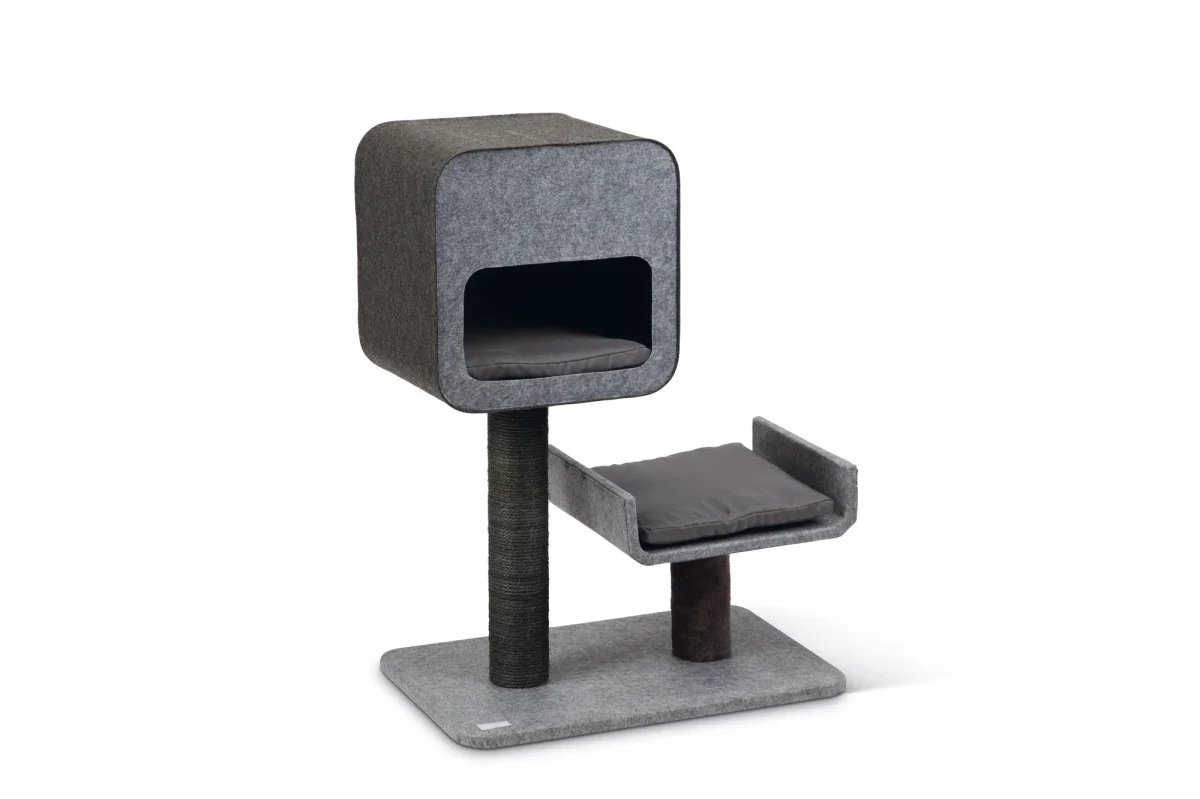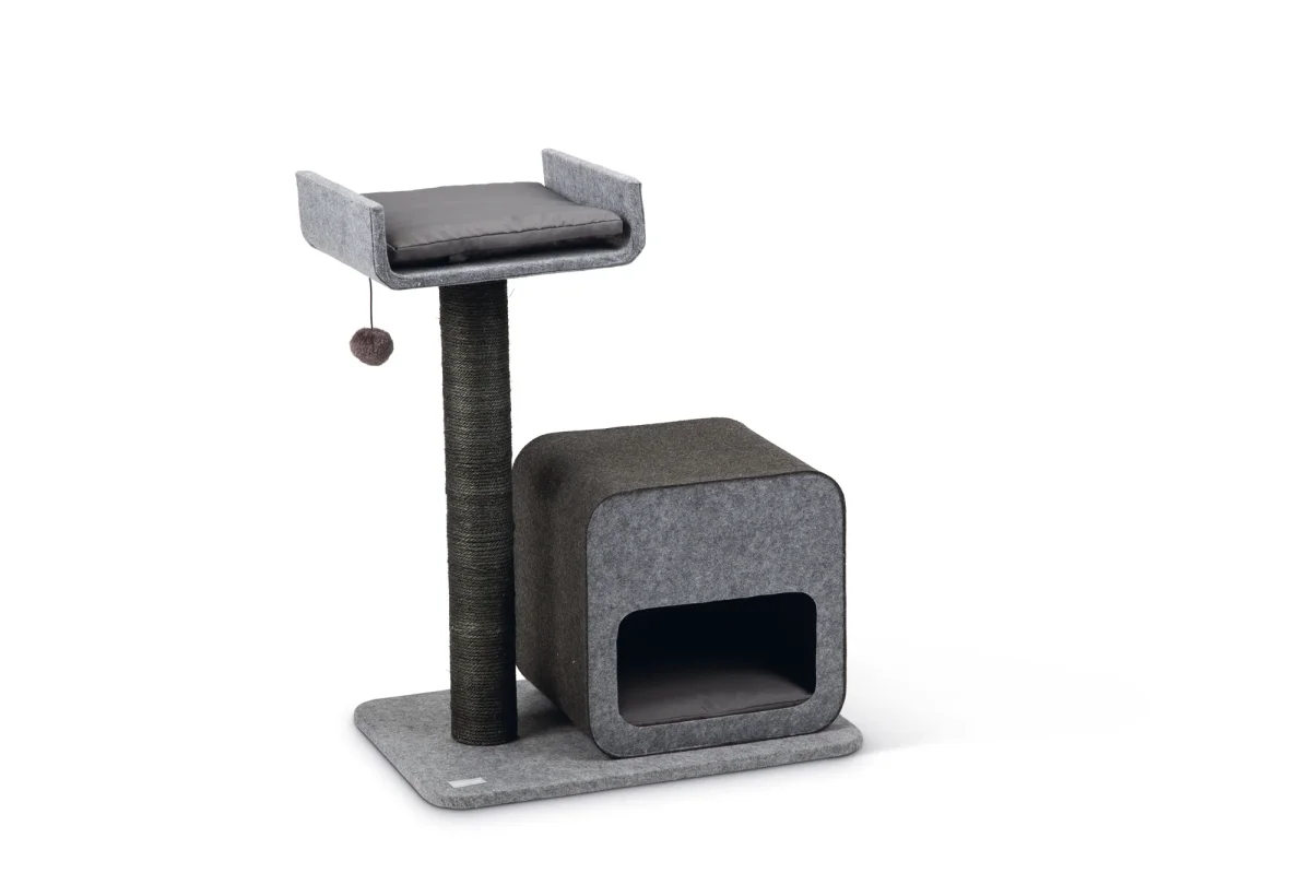 De Beeztees Flavie Krabpaal is zeer compact, maar voorziet toch in de slaap- en krabbehoefte van jouw kat. Dit krabmeubel bestaat uit een krabpaal met plateau en daarnaast een kattenhuisje. Dit meubel is gemaakt van vilt, wat het een stoere en mooie uitstraling geeft. Het plateau kan jouw kat gebruiken om alles in de gaten te houden of lekker uit te rusten. Ook in het huisje kan jouw kat lekker een dutje doen en zich even heerlijk terugtrekken na een hele middag krabben.