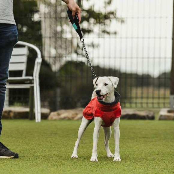Deze jas in rode en zwarte tinten is een basic voor koude seizoenen. Naast dat hij waterdicht is, heeft hij ook een ingebouwd harnas voor meer comfort en veiligheid tijdens wandelingen. Verkrijgbaar in verschillende maten, past perfect bij uw huisdier.