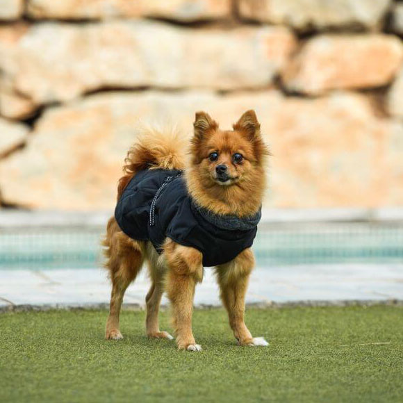 Deze jas in rode en zwarte tinten is een basic voor koude seizoenen. Naast dat hij waterdicht is, heeft hij ook een ingebouwd harnas voor meer comfort en veiligheid tijdens wandelingen. Verkrijgbaar in verschillende maten, past perfect bij uw huisdier.