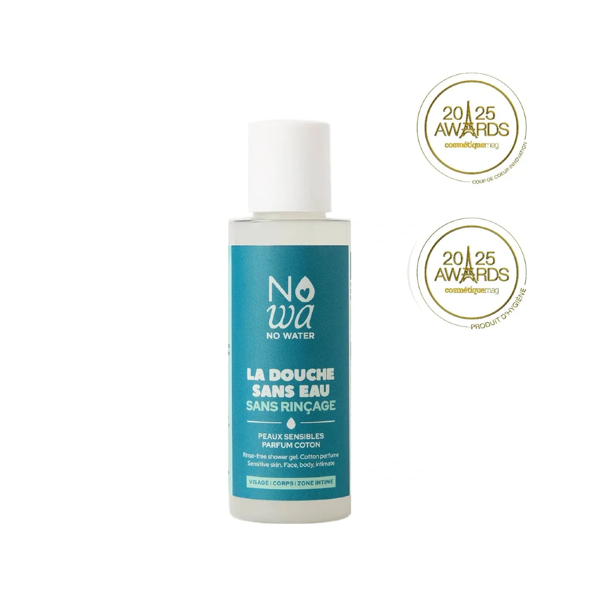 Le gel douche sans eau et sans rinçage de la marque Nowa est une solution nomade, écologique et pratique pour nettoyer efficacement le visage et le corps sans utiliser une seule goutte d’eau.