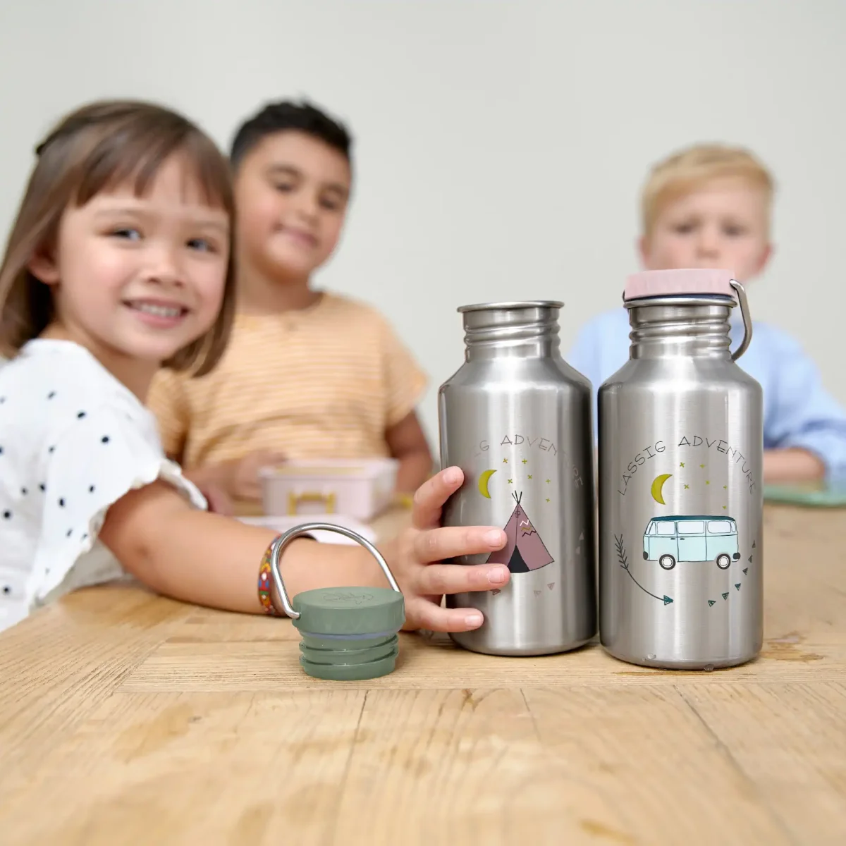 La gourde en acier Inoxydable de la marque allemande Lässig est une alternative parfaite aux bouteilles en plastique pour nos petits aventuriers assoiffés.