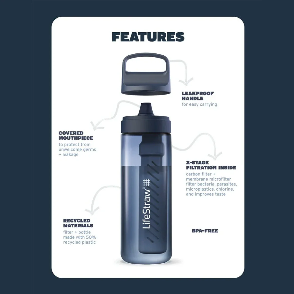 La gourde filtrante LifeStraw Go Series 650 ml est conçue pour les aventuriers de la vanlife, du camping, trekking et road trip, qui veulent une eau potable n’importe où.