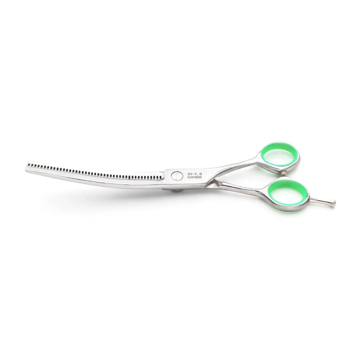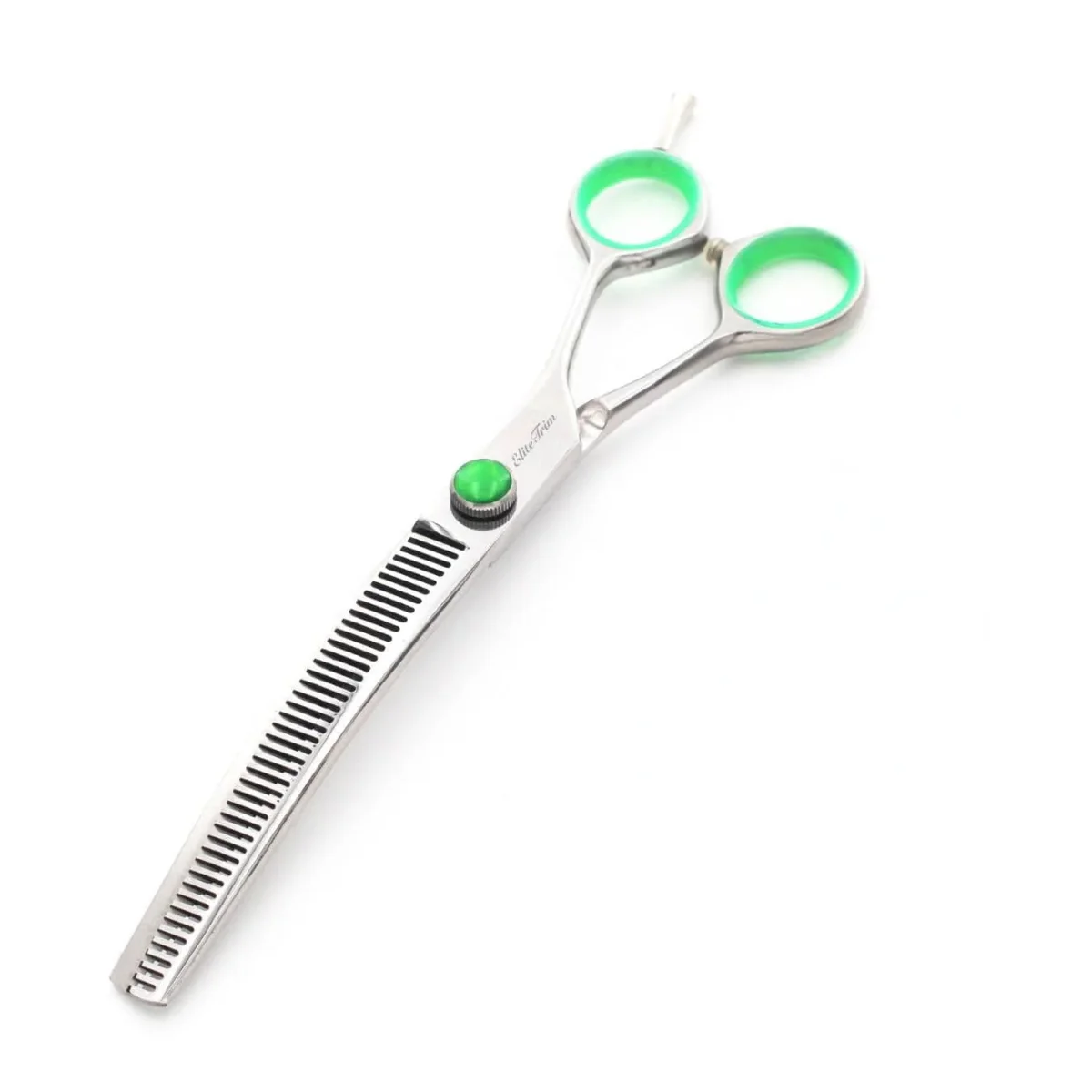 Bring calm, precision, and control to every grooming session with the Green-Gem™ 7.0″ Curved Thinner, a masterfully crafted grooming scissor made in Japan from premium Japanese stainless steel.