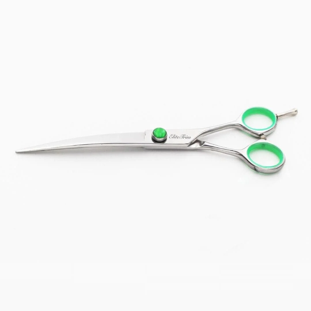 7″ ergonomic curved shears – Perfect for grooming around faces, legs, ears, and paws.