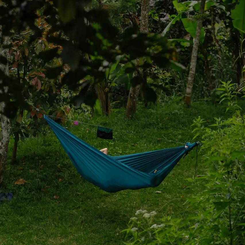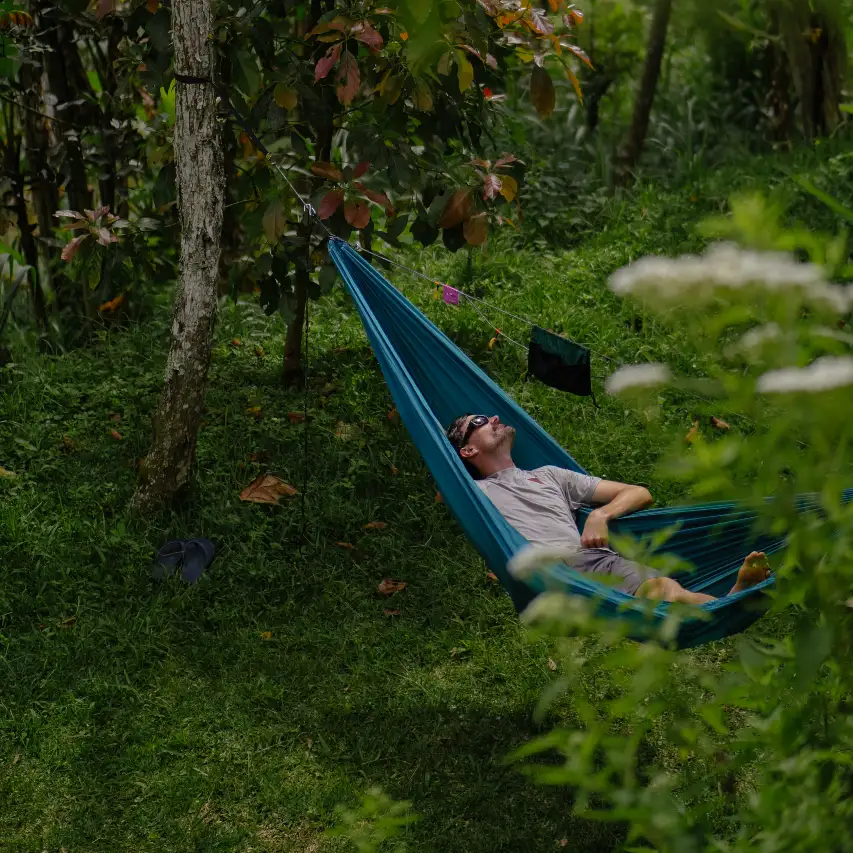 Fabriqué en toile de parachute en nylon, le hamac Compact est particulièrement léger (seulement 500g) et robuste tout en restant élastique. La toile utilisée par Ticket To The Moon est certifiée OEKO-TEX, elle est donc adaptée à tous les types de peau, même sensibles.
