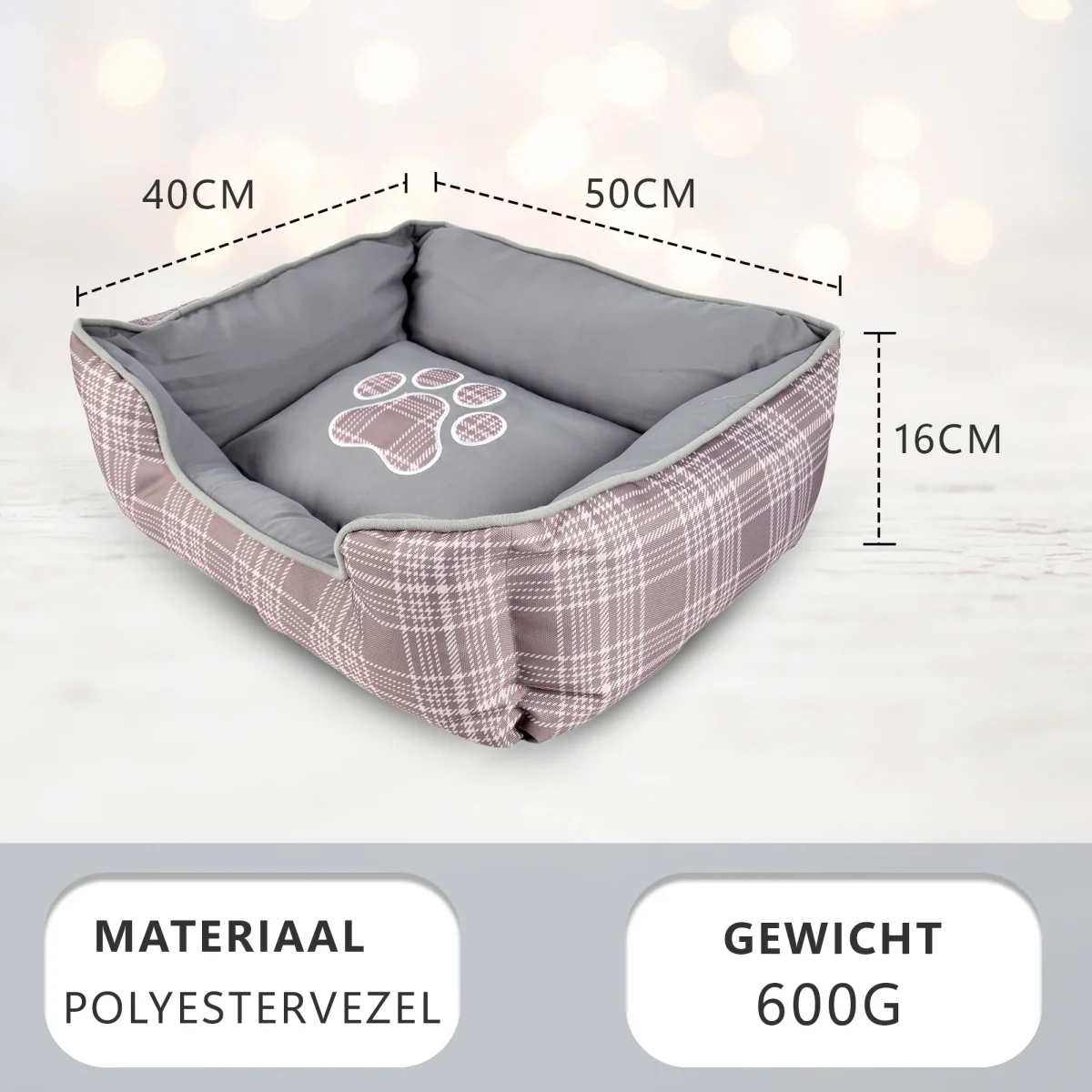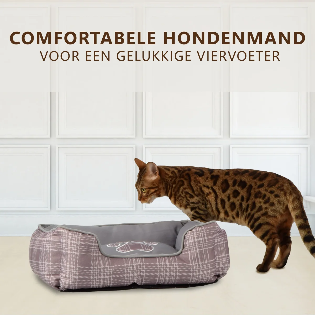 Deze comfortabele mand van 50x40x16 cm is ideaal voor zowel honden als katten. Het hondenkussen met zachte polyester vulling, 600 g gewicht, biedt uitstekende ondersteuning voor alle leeftijden, inclusief huisdieren met gewrichtspijn of artritis. Verhoogde randen verhogen het comfort en de veiligheid, terwijl de antislip bodem de mand stabiel houdt op gladde oppervlakken.
