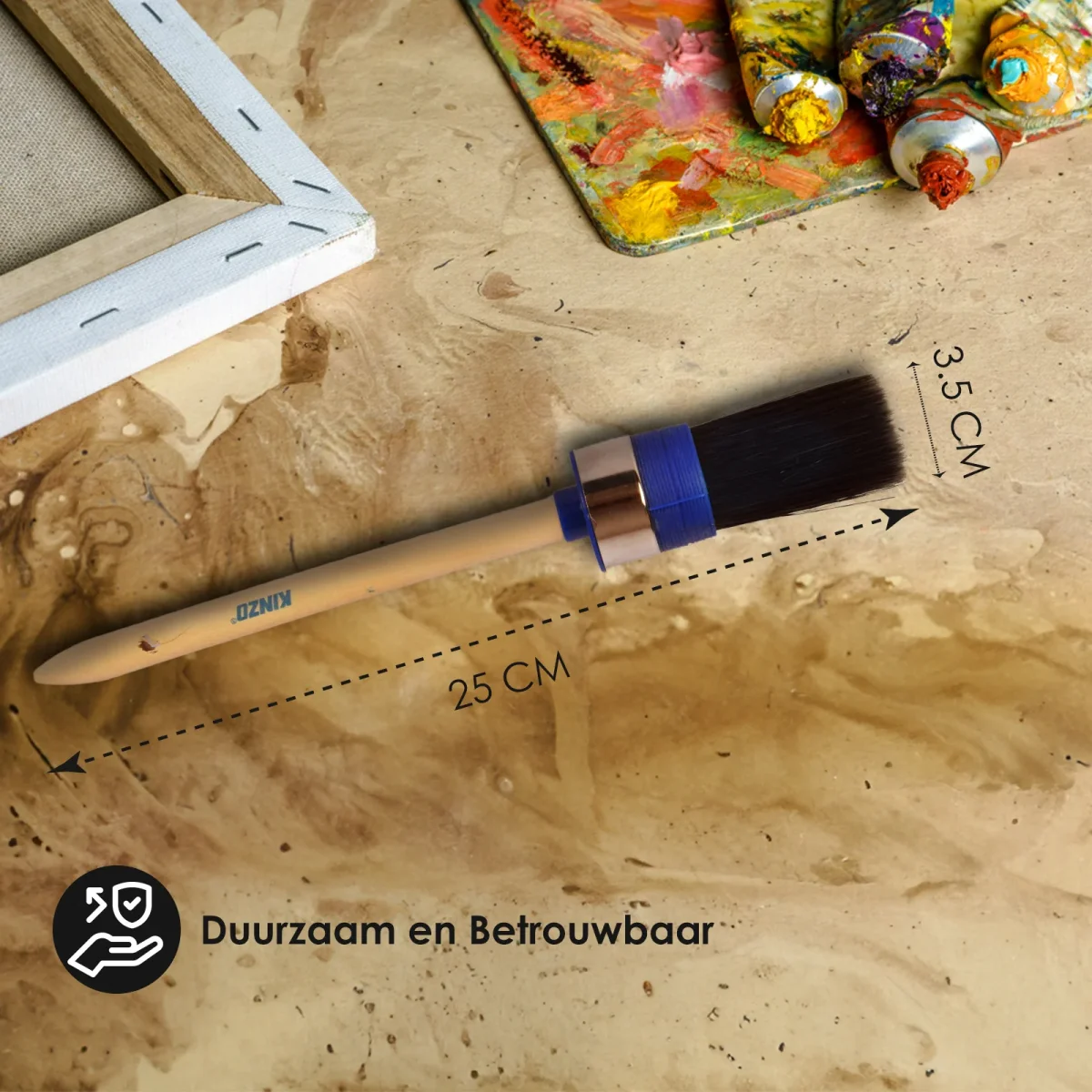 Hoogwaardige Schilderskwasten voor een Professioneel Resultaat Of je nu een doorgewinterde vakman bent of een doe-het-zelver, deze verfkwasten zijn een onmisbare toevoeging aan je gereedschapskist. Gemaakt van duurzaam hout, deze kwasten zijn ontworpen voor langdurig gebruik. Met een breedte van 3,5 cm en een diameter van 3,5 cm zijn ze ideaal voor verschillende schilderklussen, van precisiewerk tot grotere oppervlakken. De puntkwast is perfect voor gedetailleerd werk, terwijl de brede kwast snel grote gebieden kan bedekken.