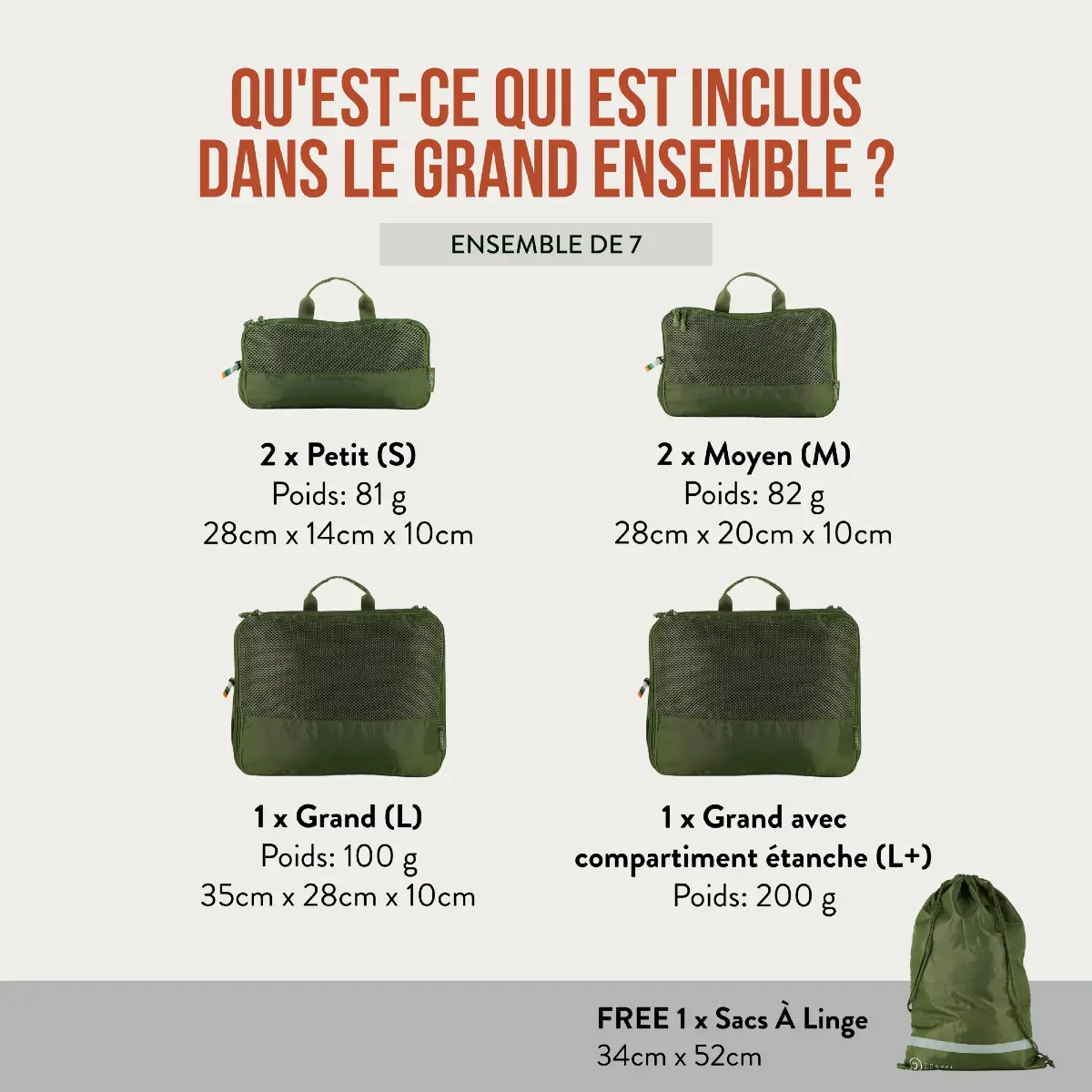 Le set comprend 7 sacs :