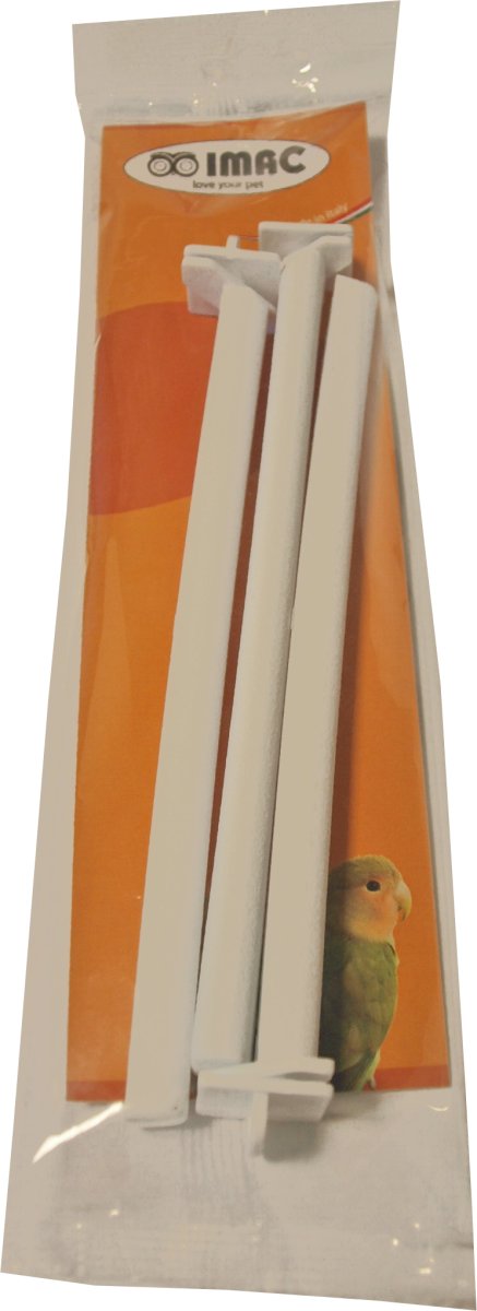Plastic indraai zitstok met klem voor in een vogelkooi. U draait de klem makkelijk vast tussen de tralies en uw vogel heeft er een zitplaats bij. Verpakt per 3 stuks.