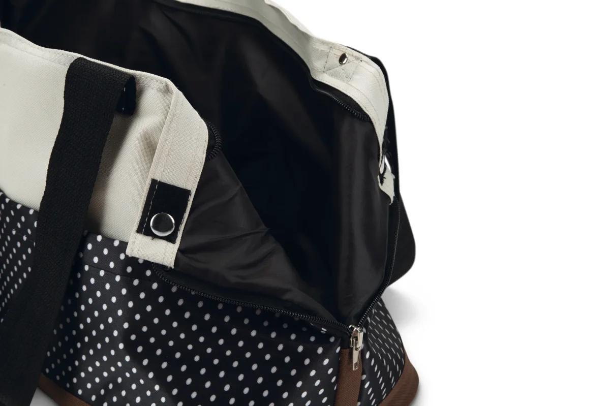De Kiomi draagtas van Beeztees is een mooie nylon draagtas waar jij en jouw hond zeker mee mogen worden gezien. In deze reistas kunnen kleine honden mee worden genomen. Aan de binnenkant van de reistas is een elastiek met musketonhaak bevestigd, zodat je jouw hond vast kunt zetten. Zo weet je zeker dat jouw hond niet zomaar uit de tas springt. De gehele bovenkant is te openen door middel van een rits, zodat er altijd voldoende frisse lucht in de tas komt. De tas heeft een gestoffeerde bodemplaat, wat lekker ligt voor jouw hond. Het stoffen gedeelte is een soort hoes, die uitwasbaar is op 30 graden in de wasmachine. De tas is eenvoudig mee te nemen door middel van de handvatten.