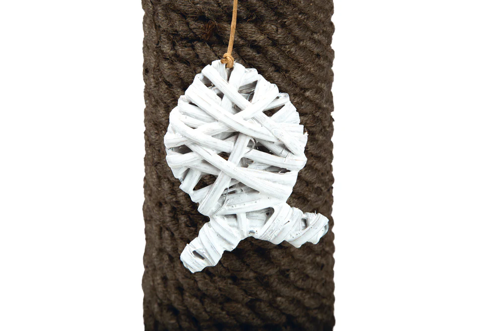 Deze prachtige sisalpaal is vervaardigd met duurzaam schipperstouw, waardoor het niet alleen stevig is maar ook een natuurlijke uitstraling heeft die naadloos opgaat in jouw interieur. Bovenop de paal prijkt een elegant leren riempje met een charmant Kubu speelvisje, waardoor deze krabpaal niet alleen een functioneel item is maar ook een visueel aantrekkelijk accessoire voor jouw huis.