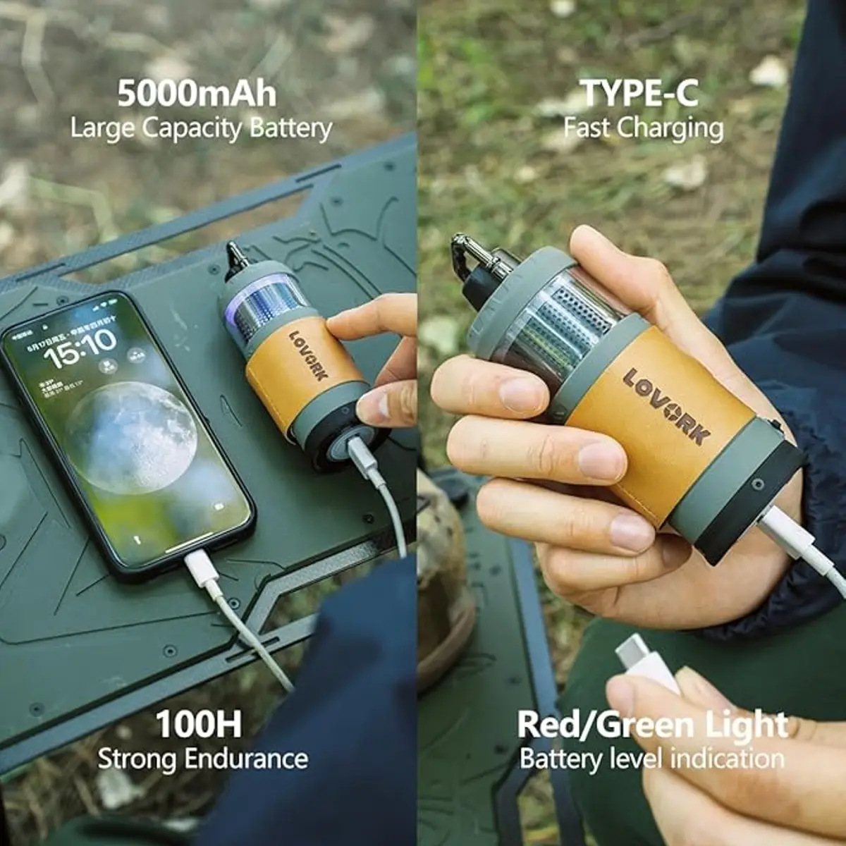 Cette lampe 7-en-1 remplit toutes les fonctions clés d’un campeur moderne : éclairage, son, ventilation, gonflage et anti-insectes. Vous restez autonome et connecté en tout lieu.