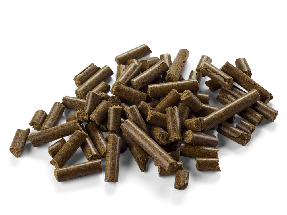 Algenmengsel, kippenlevermeel, vezelmeel van de tandenborstelboom, bietenpulp, gelatine, groene thee, silica, kruidenplanten