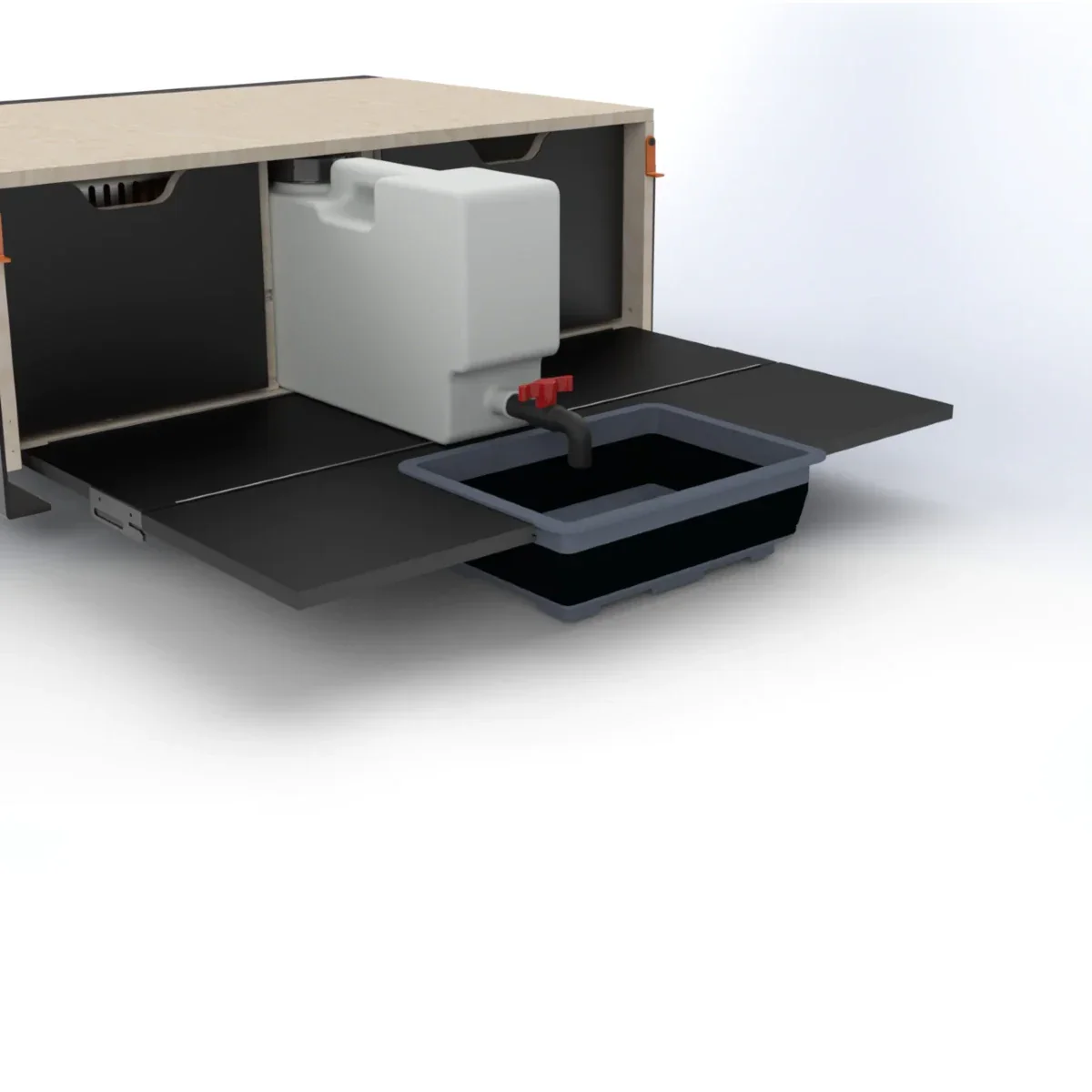 L’option tiroir de droite vous permet de rajouter un tiroir de rangement ou choisir un tiroir réfrigéré à cet emplacement (le réfrigérateur nécessite une batterie).
