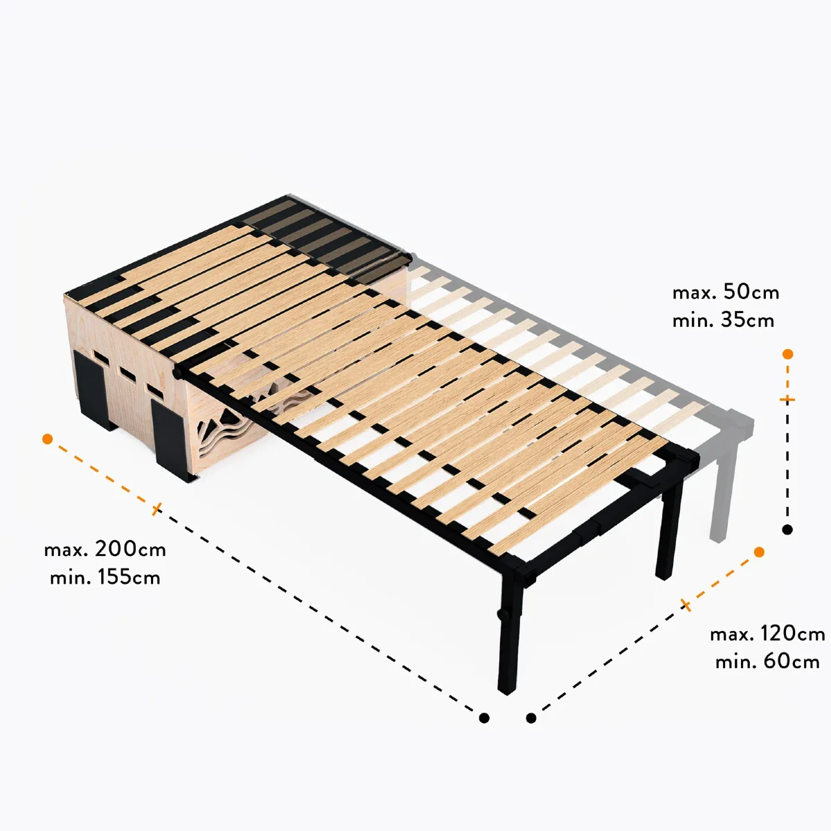 Couchette à lattes avec un sommier peigne allant de 60cm à 120cm pour avoir une couchette 1 ou 2 places.
