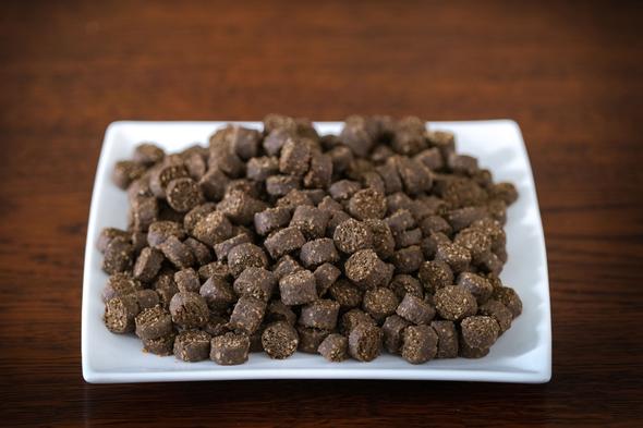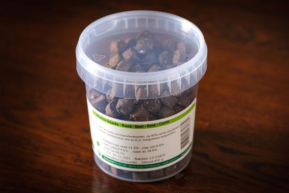 Samenstelling: vlees en verse slachtproducten (min. ca 40% rund), aardappel, plantaardige bijproducten, plantaardige olie en EU toegestane hulpstoffen