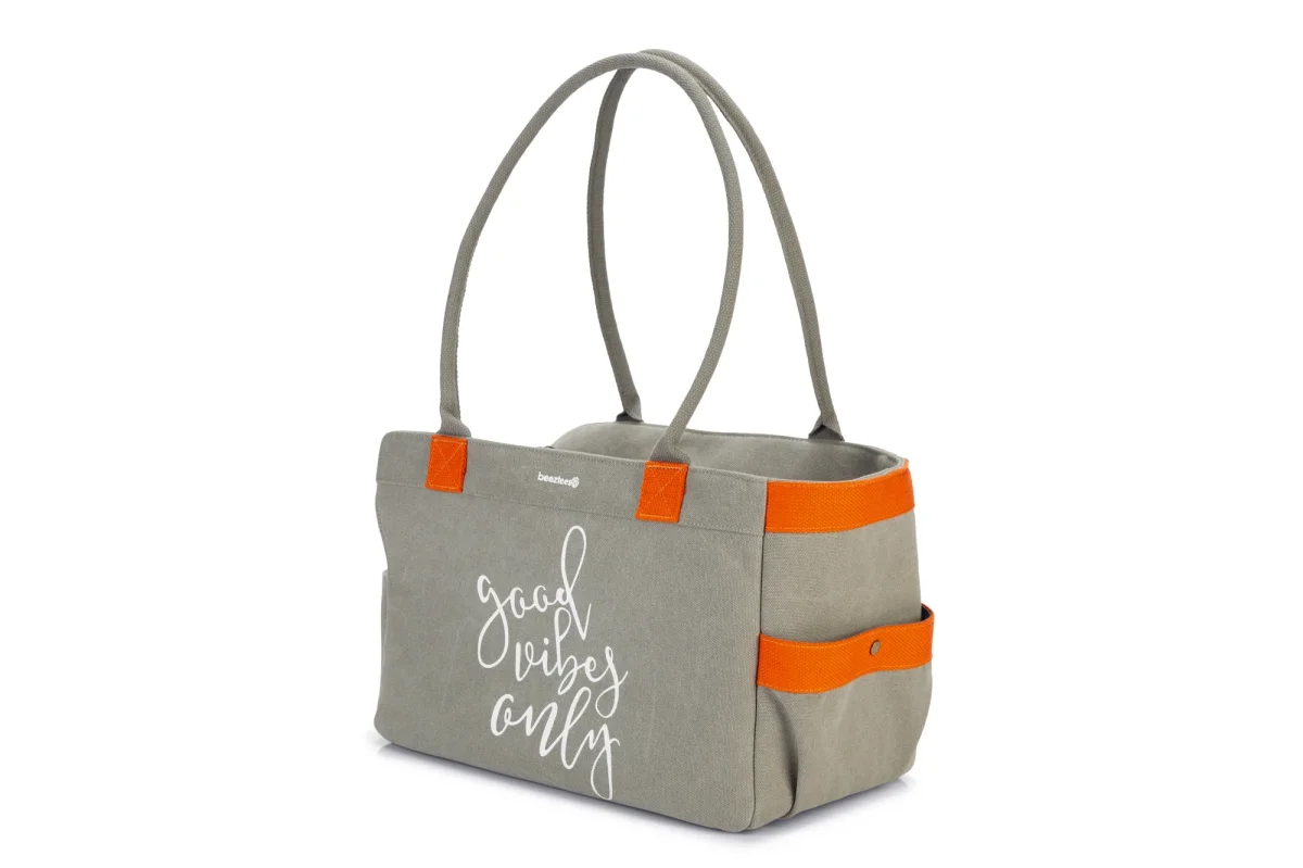 Samen met jouw hond op pad? Dat kan met deze Beeztees Metka Schoudertas. Deze trendy schoudertas voor de hond is gemaakt van duurzaam canvas, hierdoor krijgt de tas een beetje een beachlook. De tas is aan de binnenkant voorzien van een zachte mat, zodat jouw hond extra comfortabel kan liggen of zitten. De tas is aan de bovenkant af te sluiten met gaas, waardoor er altijd voldoende frisse lucht in de tas aanwezig is. Aan de binnenkant van de schoudertas is een haakje bevestigd, waaraan je de halsband of het harnas van je hond kunt bevestigen, dit biedt extra veiligheid. In het handige vakje aan de achterkant van de tas kun je nog een lekker snackje of bijvoorbeeld poepzakjes meenemen voor onderweg. Onder het motto “”good vibes only”” kan jullie avontuur beginnen!