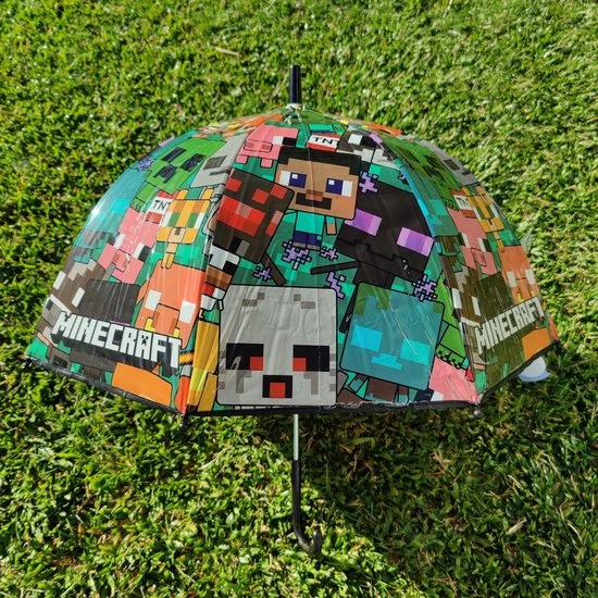 Het unieke aan deze paraplu is de opvallende en kleurrijke Minecraft-print, waarmee jouw kind zich direct onderscheidt. Deze print is niet alleen leuk maar ook herkenbaar voor fans van het populaire spel. Een favoriet onder de paraplu’s voor kinderen met leuke printjes en geliefd bij ouders die zoeken naar kinderparalu’s met grappige printjes.