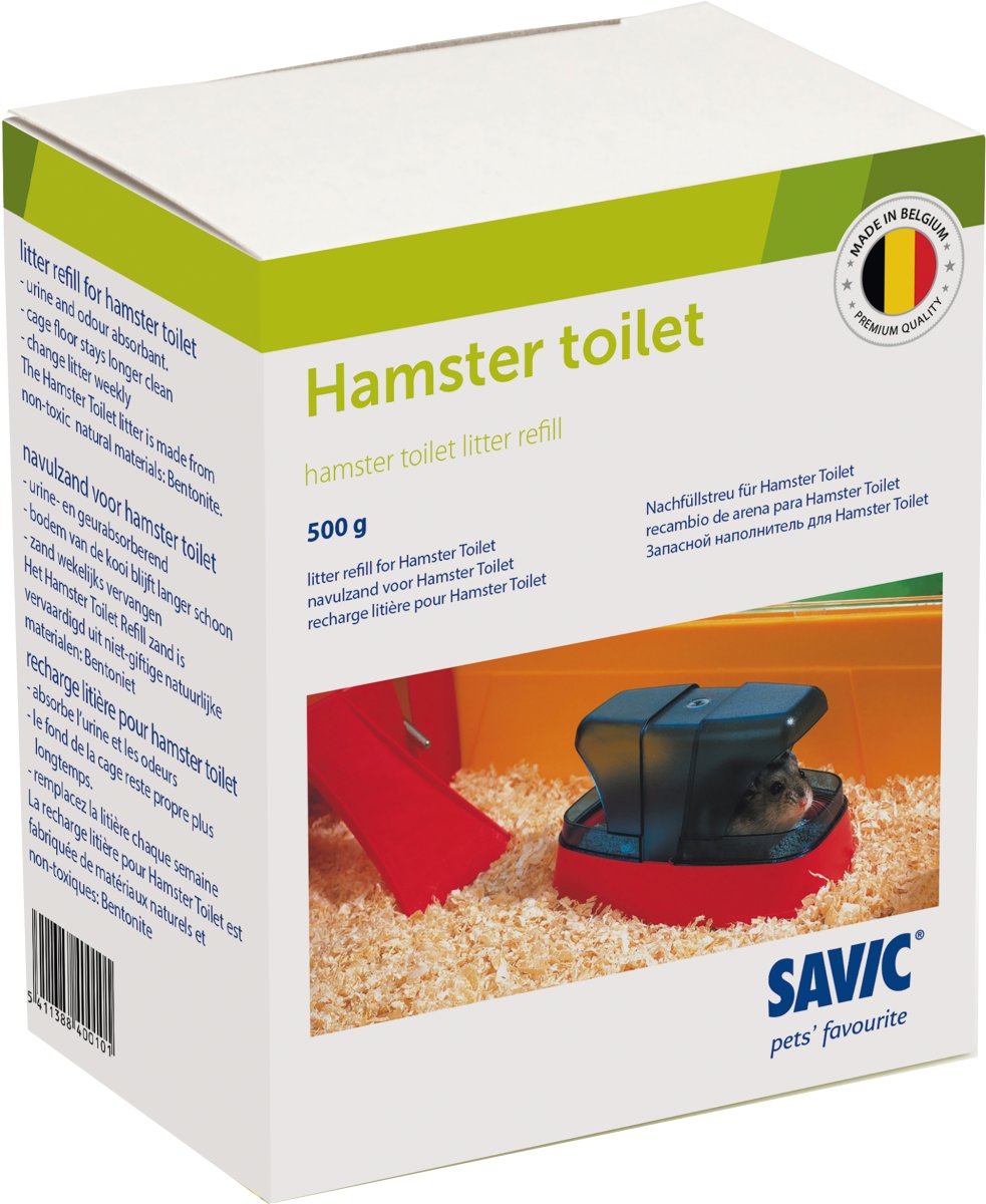 Navulling zand voor het Savic hamstertoilet, houdt vocht en luchtjes vast. Inhoud: 500 gram.