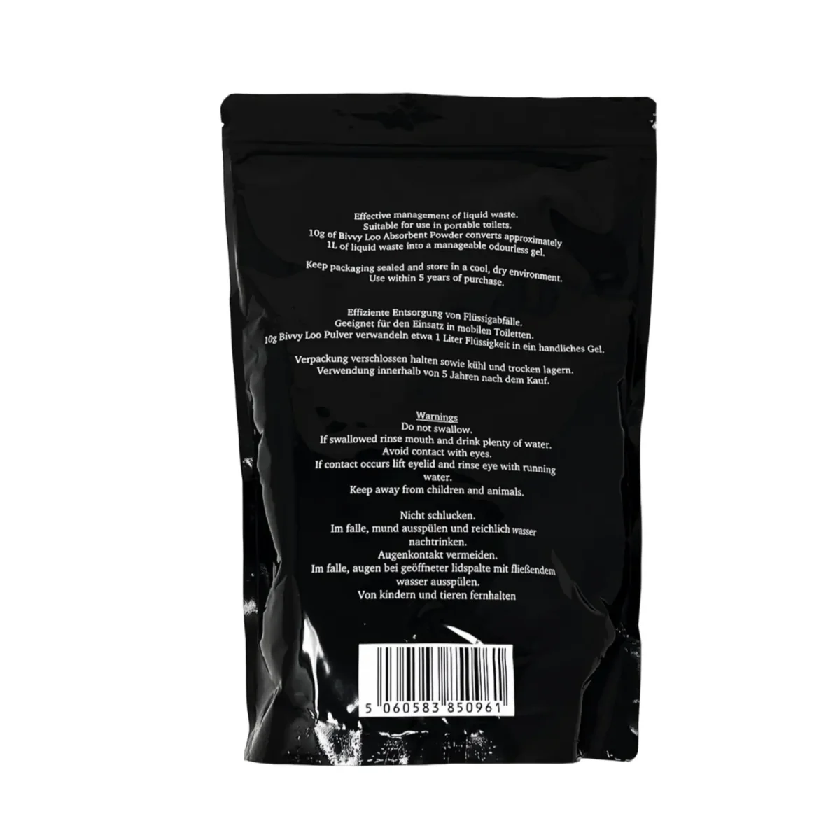 La poudre absorbante pour toilettes sèches de camping de la marque Bivvy Loo vous permet d’utiliser de manière optimale et hygiénique votre toilette sèche pliable en transformant les liquides en gel.