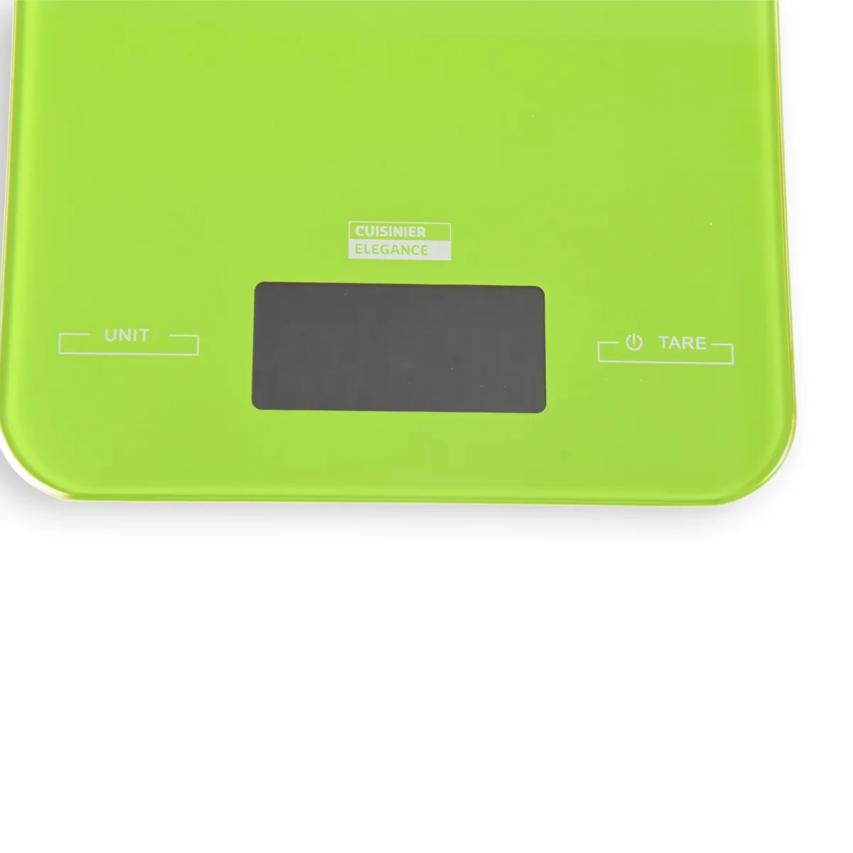 Onze groene digitale keukenweegschaal is een onmisbare toevoeging aan elke keuken. Gemaakt van hoogwaardig roestvrij staal en glas, biedt deze weegschaal nauwkeurige metingen voor al uw kookbehoeften.