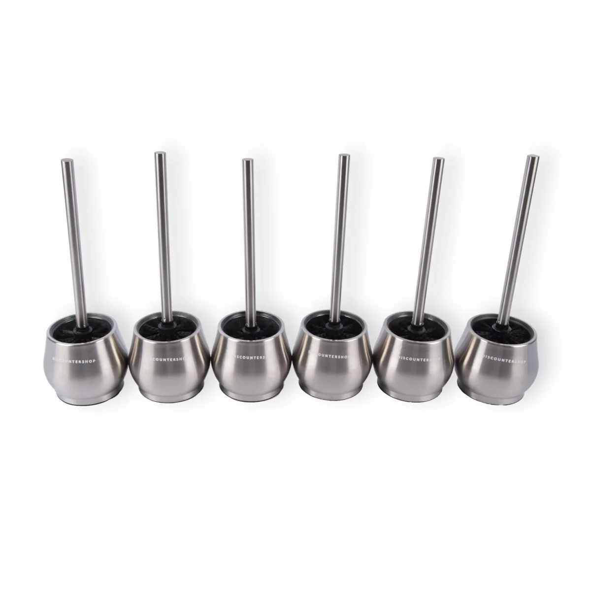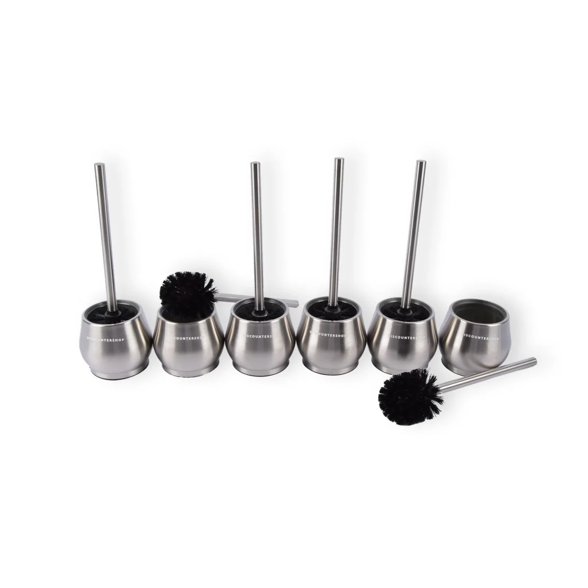 Deze set van zes toiletborstels met houders is perfect voor elke badkamer. Elke borstel heeft een premium ontwerp met een stevig handvat en een sneldrogende container. De zilveren kleur voegt een tijdloze elegantie toe aan uw badkameraccessoires, waardoor uw ruimte altijd schoon en stijlvol oogt.