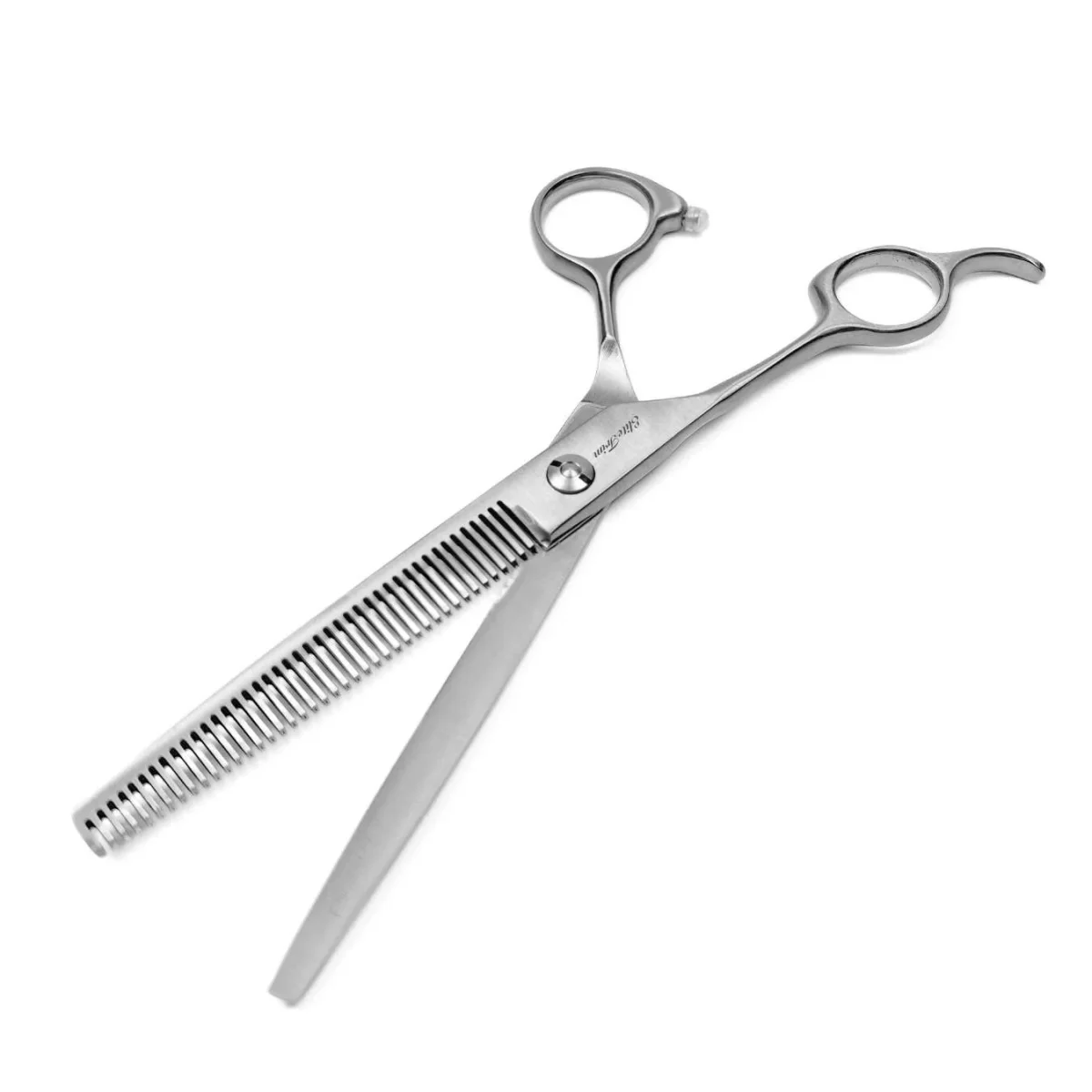 Unlike the aggressive Chunker (which removes bulk fast), this 38-tooth thinner is designed for finesse. With a gentle 30% thinning rate, it delicately blends layers together, softens harsh lines, and adds that final “show-quality” polish to any groom. And because it’s a True Left-Handed shear, you get perfect results without the hand strain.