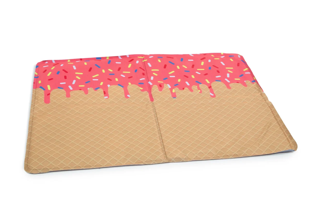 De Quick Cooler Oblie Koelmat van Beeztees is net even anders dan andere koelmatten. Deze koelmat heeft de uitstraling van een ijsje. Een echte obliehoorn met discodip en ziet er daardoor extra vrolijk uit. Dit past helemaal bij het thema “zomer”. De koelmat is een kant-en-klare zelfactiverende koelmat die direct te gebruiken is. De lichaamsdruk van jouw hond zorgt ervoor dat de koelmat wordt geactiveerd, waarna het lichaam van de hond voor enkele uren koel blijft. Om de koelmat opnieuw te activeren, mag de mat een aantal minuten niet worden gebruikt.