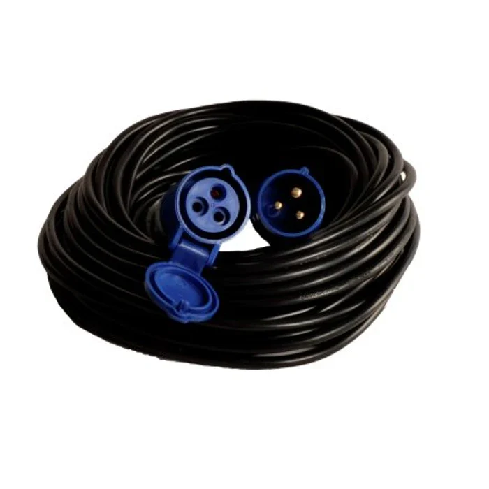 Le prolongateur électrique est équipé de deux fiches CEE types P17 (une mâle et une femelle). Sa longueur de 25m permet de raccorder plus facilement votre véhicule à une prise électrique sans avoir à le déplacer.