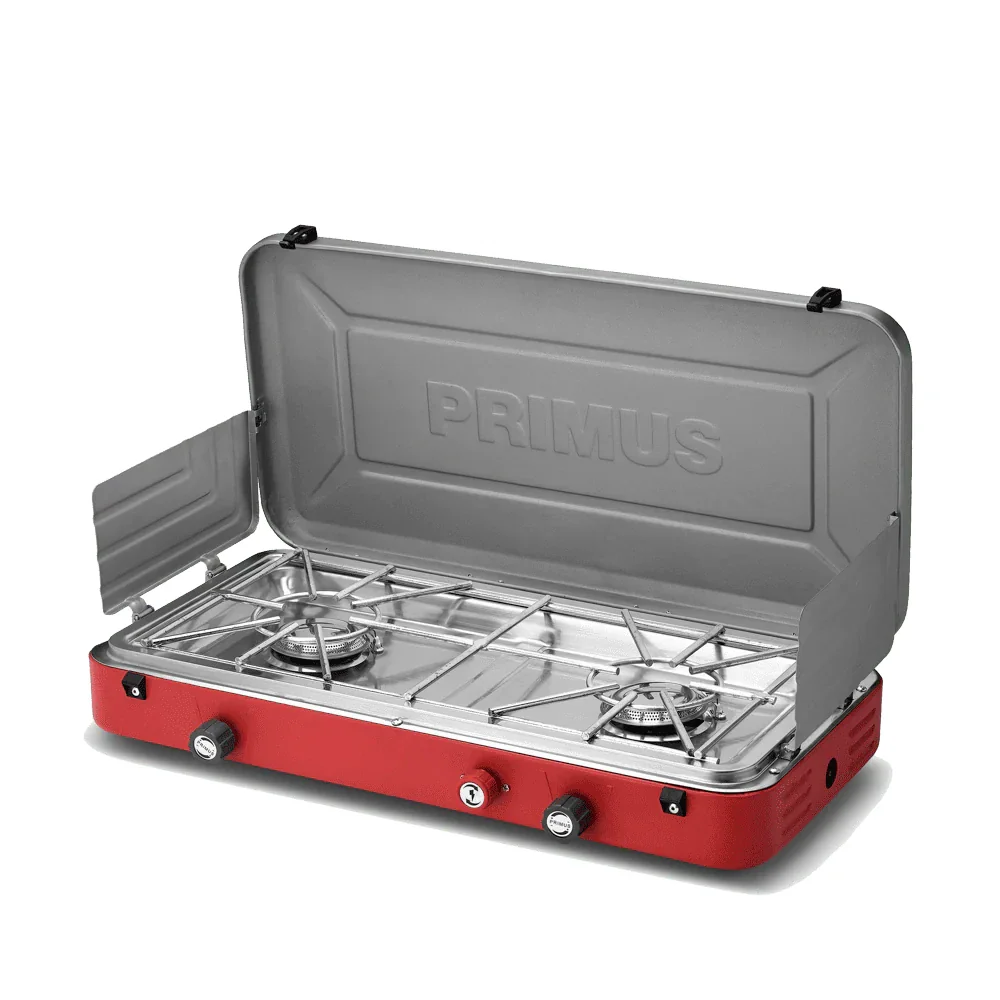 Le réchaud à gaz Atle de la marque Primus permet, grâce à ses 2 brûleurs indépendants, de préparer de bons repas comme à la maison lors de vos voyages nomades.