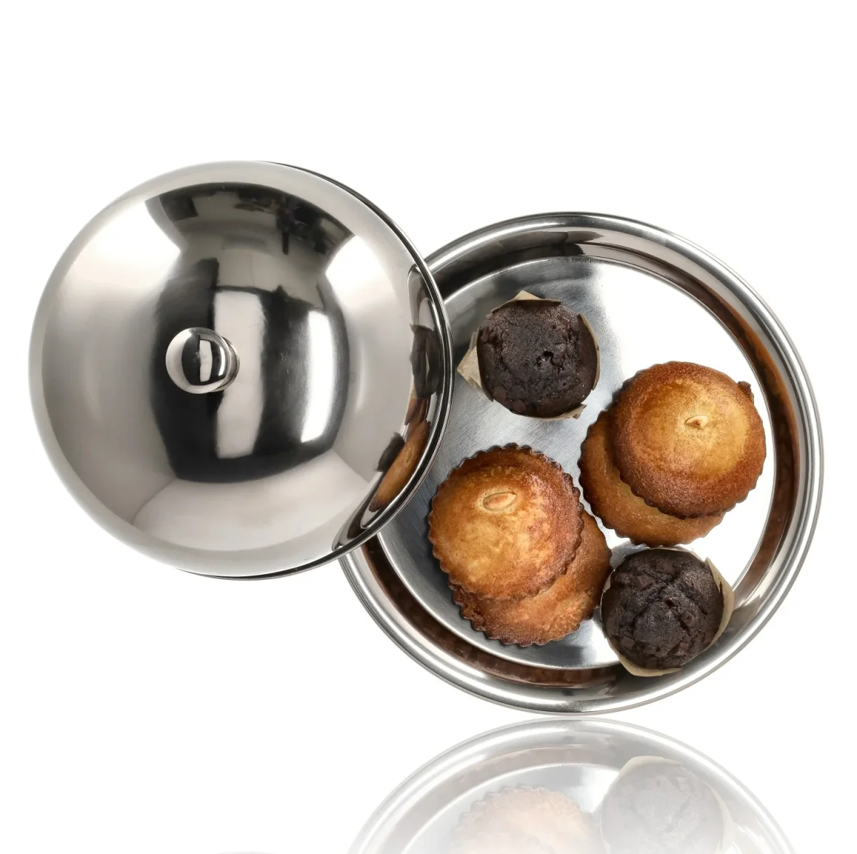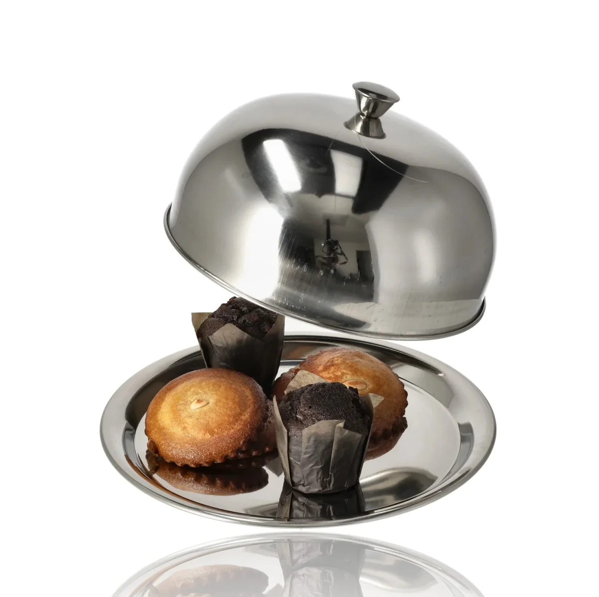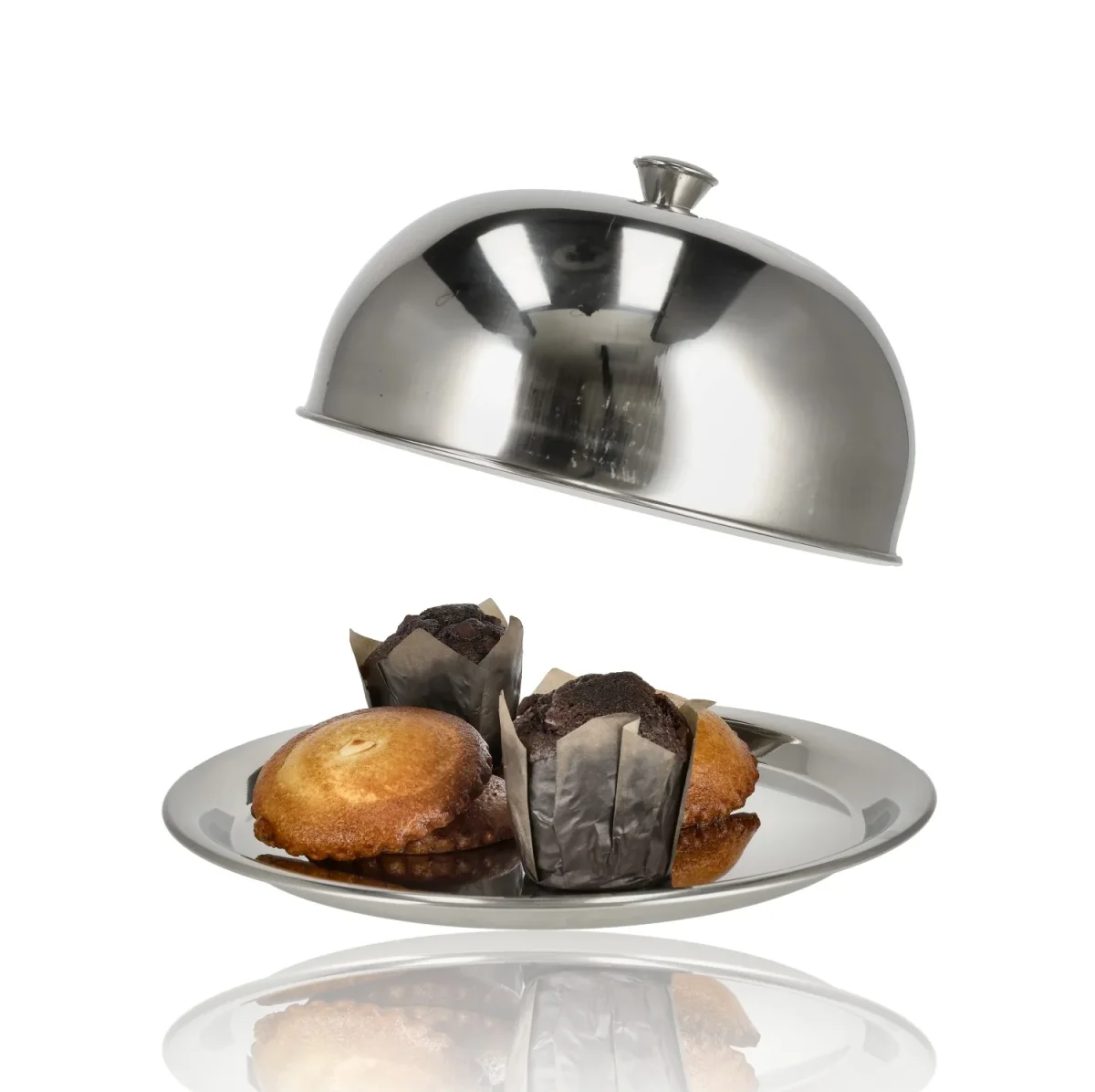 Presenteer je gerechten netjes én hygiënisch met deze praktische RVS serveerschaal met stolp. Ideaal als taartstolp, kaasstolp of serveerschaal voor hapjes, snacks en fruit.