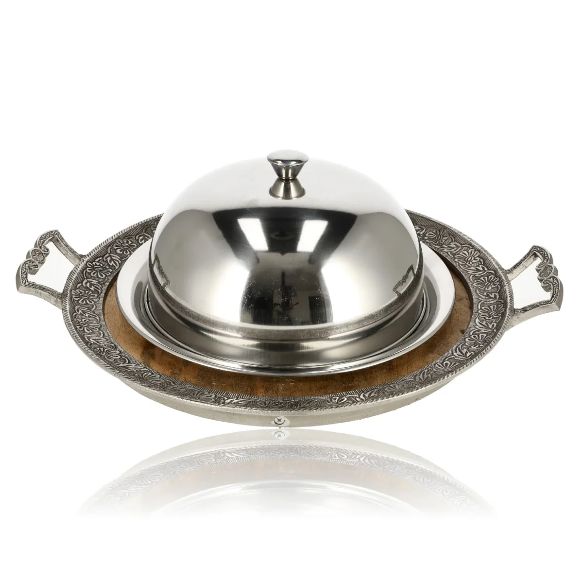 RVS Stolp met Deksel – Serveerschaal Ø26 cm met Onderbord
