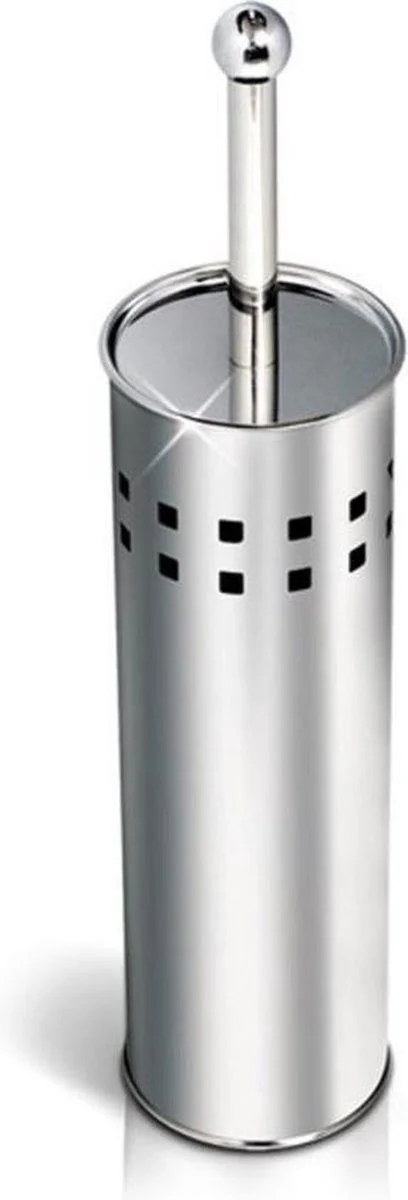 Roestvrijstalen toiletborstel / wc borstel in glanzende houder. De borstel is uitgerust met een deksel zodat opspattend water tegengehouden wordt.