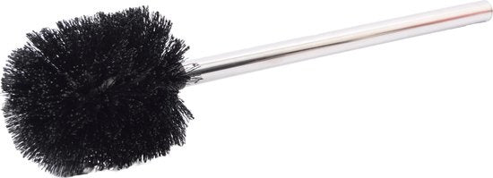 RVS toiletborstel met houder in gestreept motief. Een zilveren toiletborstelhouder, inclusief toiletborstel. Afmetingen: D9 x 14 cm. Materiaal: RVS. Toiletborstel/wc-borstel houders voor de badkamer of in het toilet.