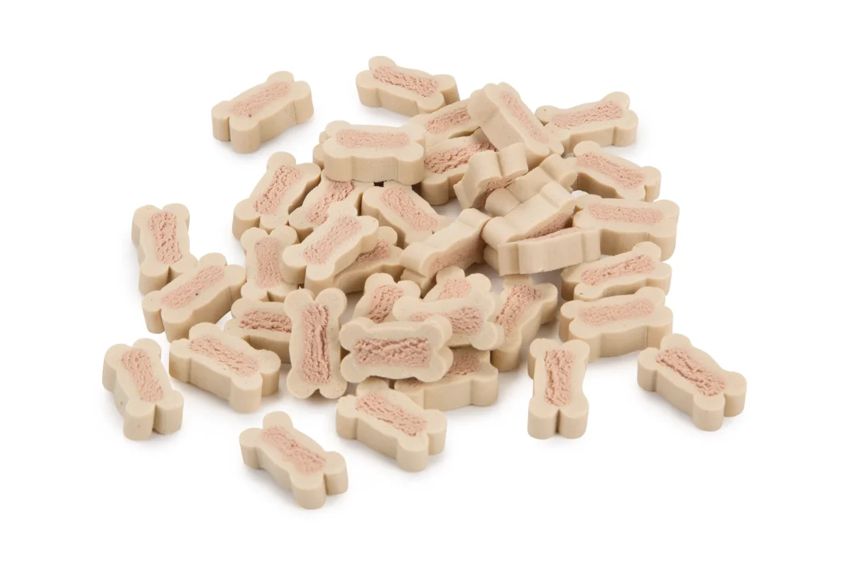 De Beeztees Zalm met Rijst Botjes zijn een onweerstaanbare snack voor jouw hond als tussendoortje. Jouw hond zal deze semi-moist snack met zalm en rijst echt heerlijk vinden.. Door het kleine formaat van de snack is deze zeer geschikt als beloning tijdens trainingen met jouw hond. Deze snack bevat geen toegevoegde suikers.